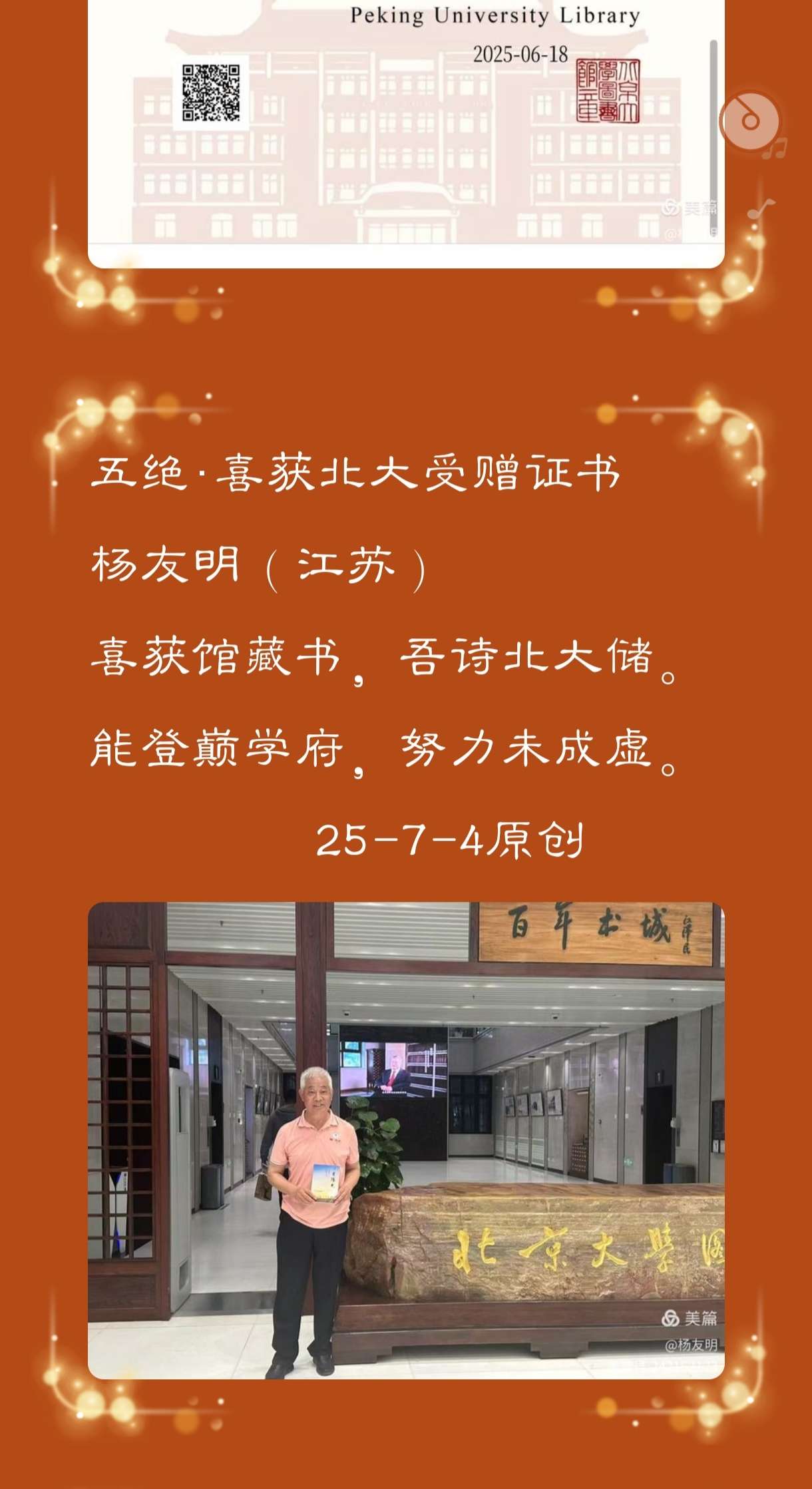 草根诗词集,也进大雅之堂。经验核通过,北大收藏。原只民间菜鸟,网络平台浅翔。不想如今,最高学府显其彰。