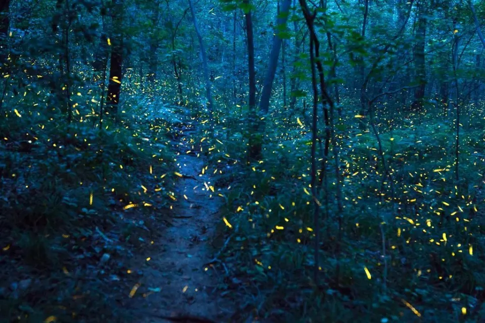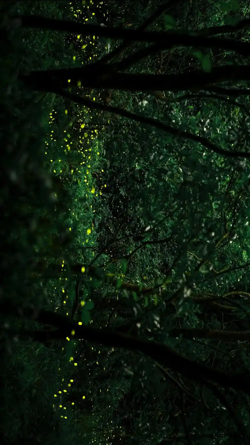 繁星陪月晚,野外对萤光。