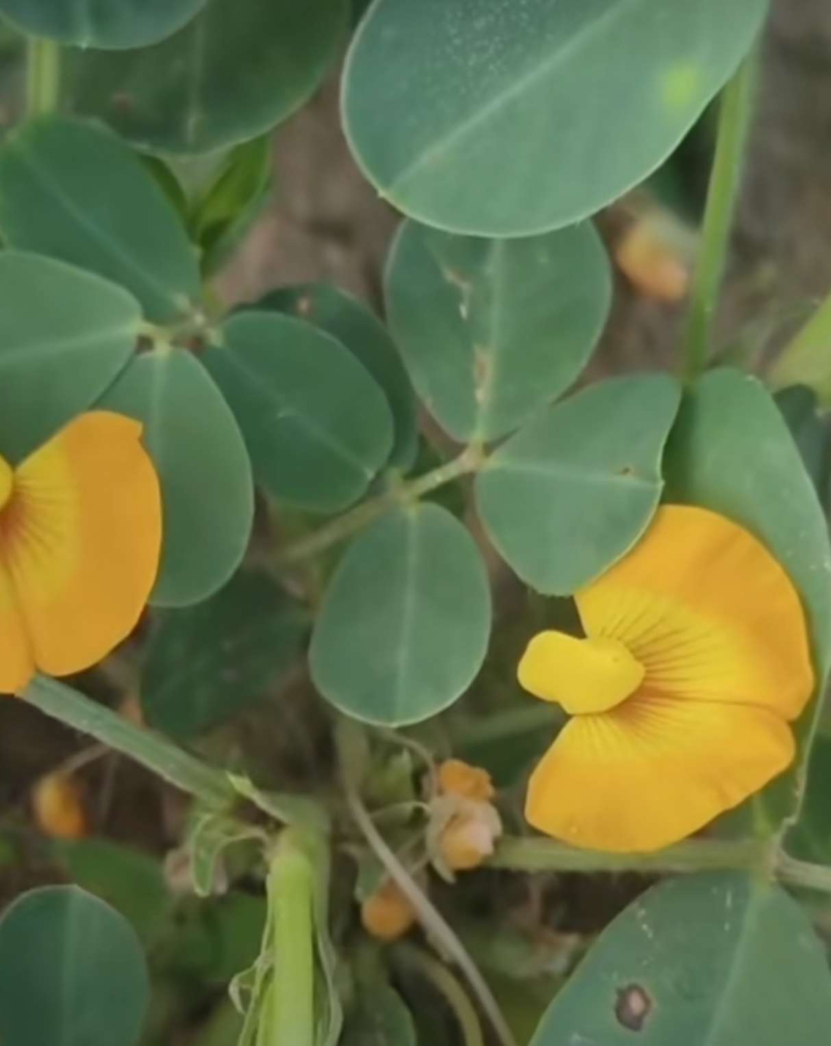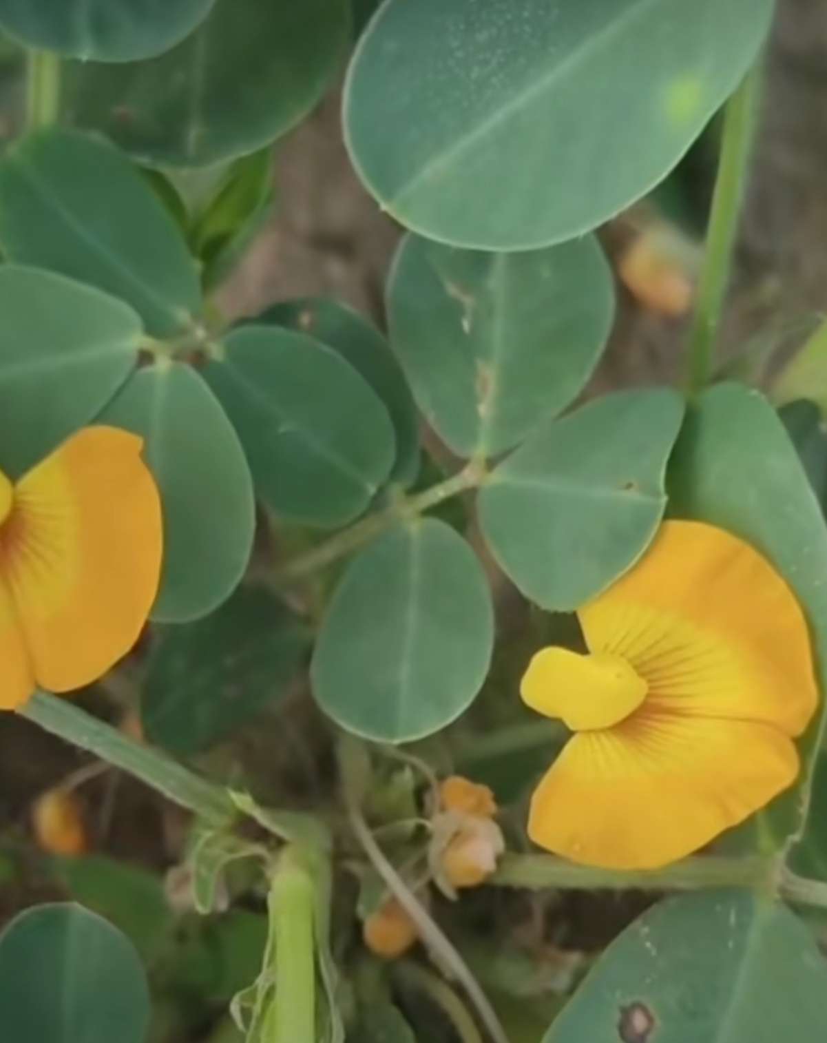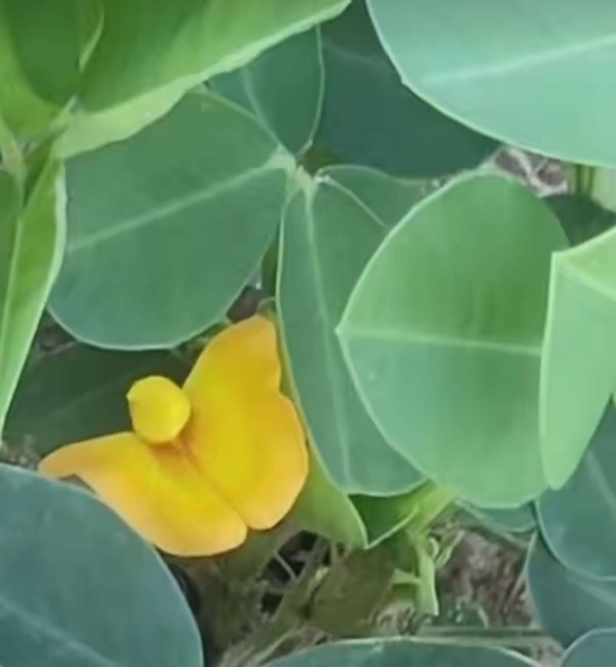 黄花若,蝴蝶追。绿丛中,恋花生地。花香叶肥根结子。果长生、众人欢喜。