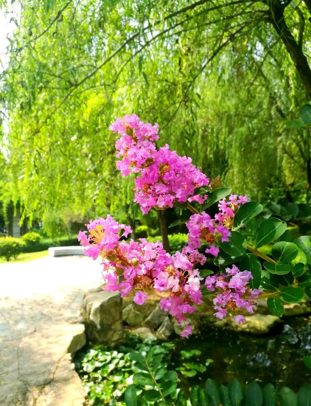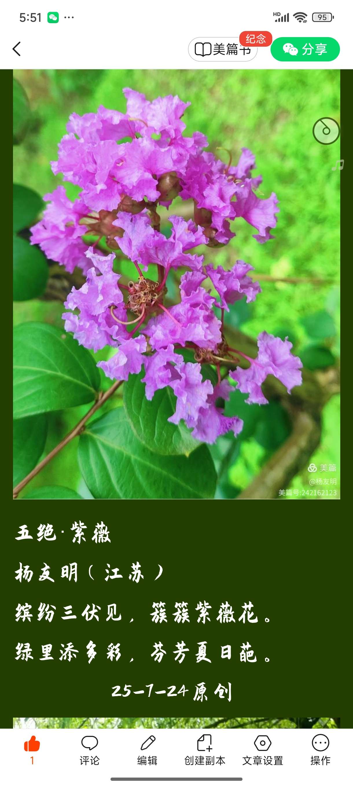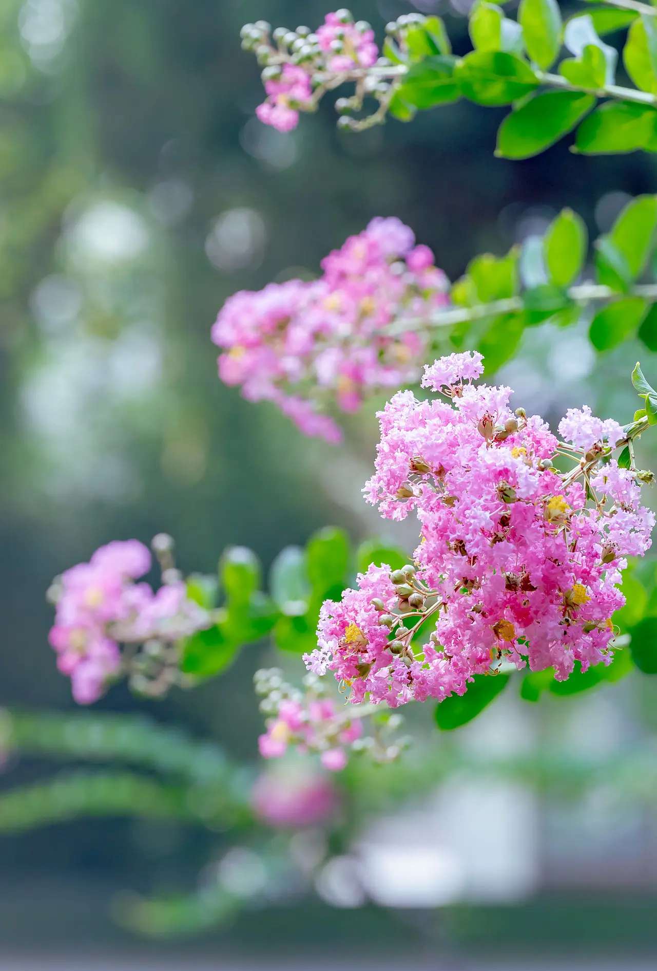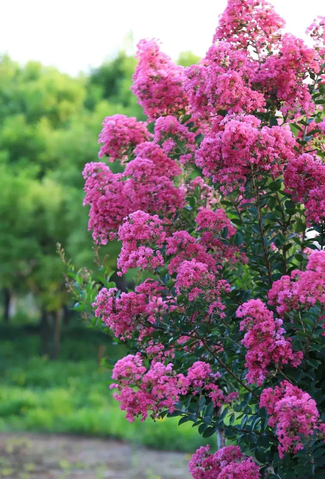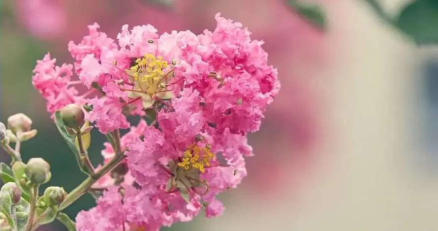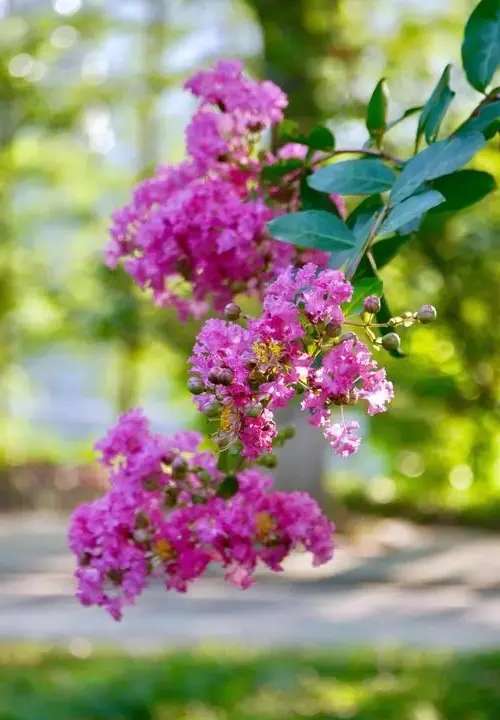 缤纷三伏见,簇簇紫薇花。