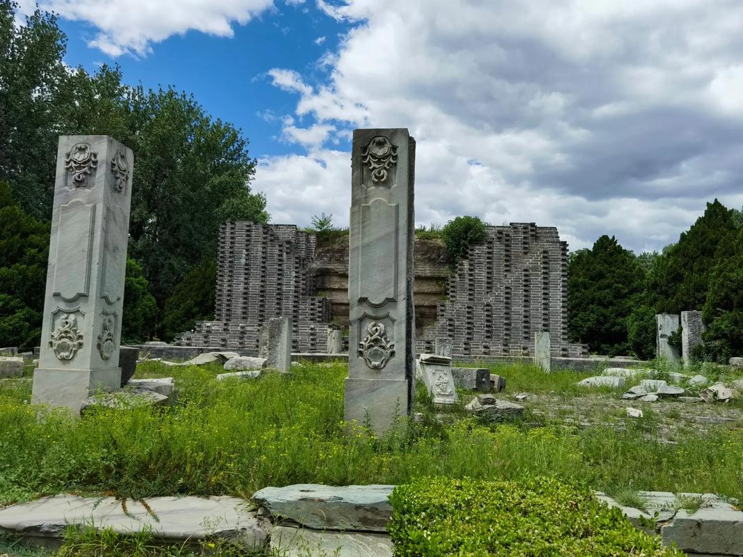 圆明园里满是恨。国宝全崩殒。法抢英烧,皇林悲断烬。