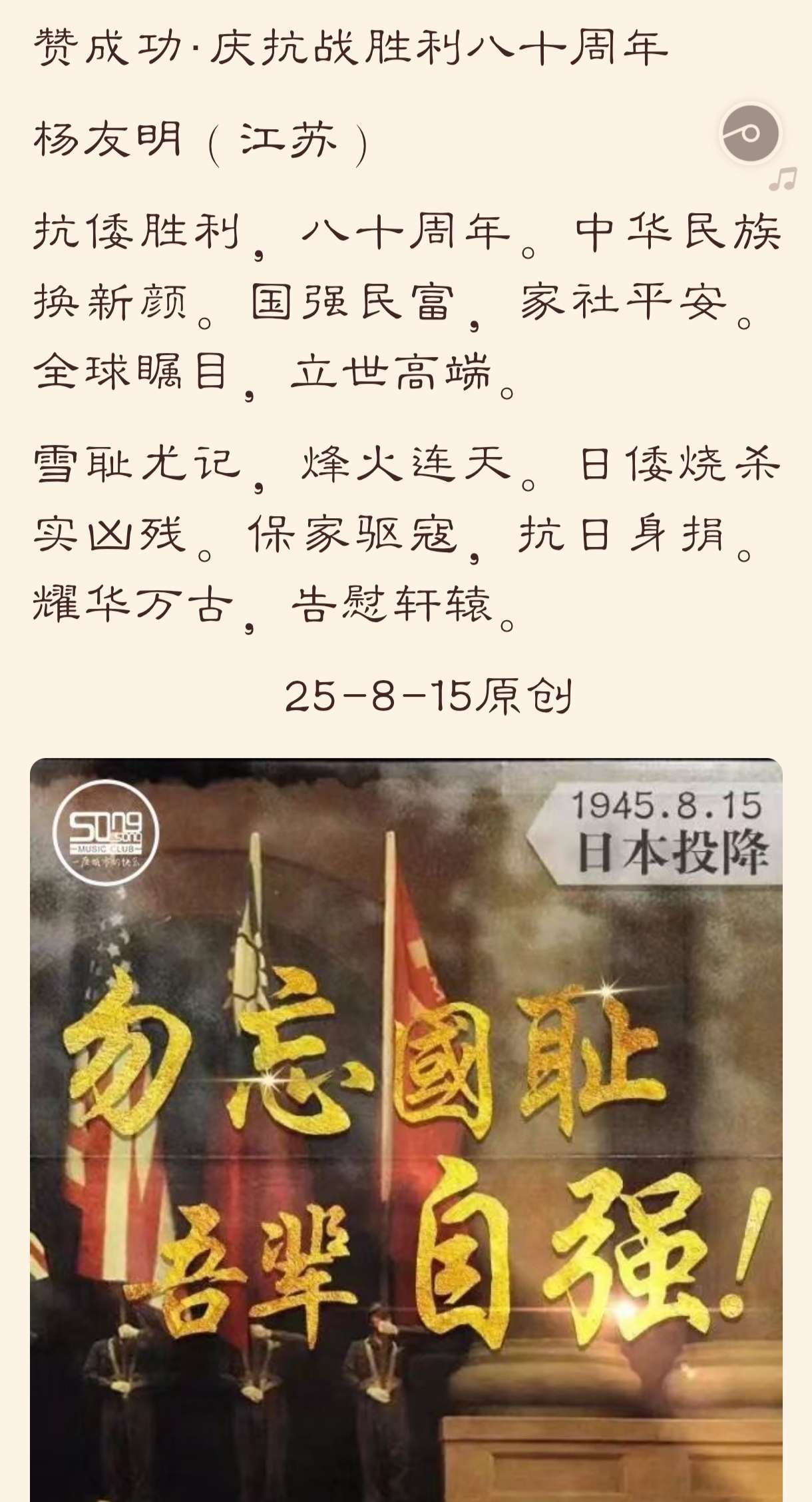 同仇敌忾东瀛败,八十年欢泪满襟。