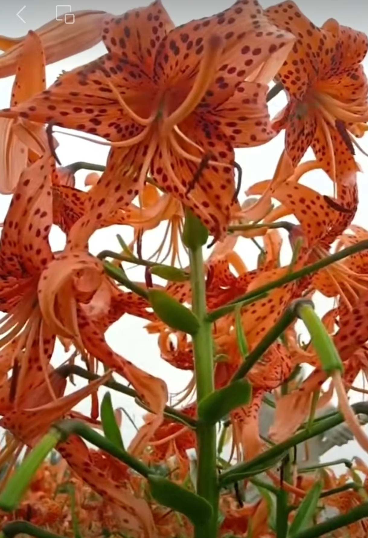又见奇花灿,迎笑虎斑黄。百合卷丹名,今朝才晓,异珍名卉,瑶溢芬芳。