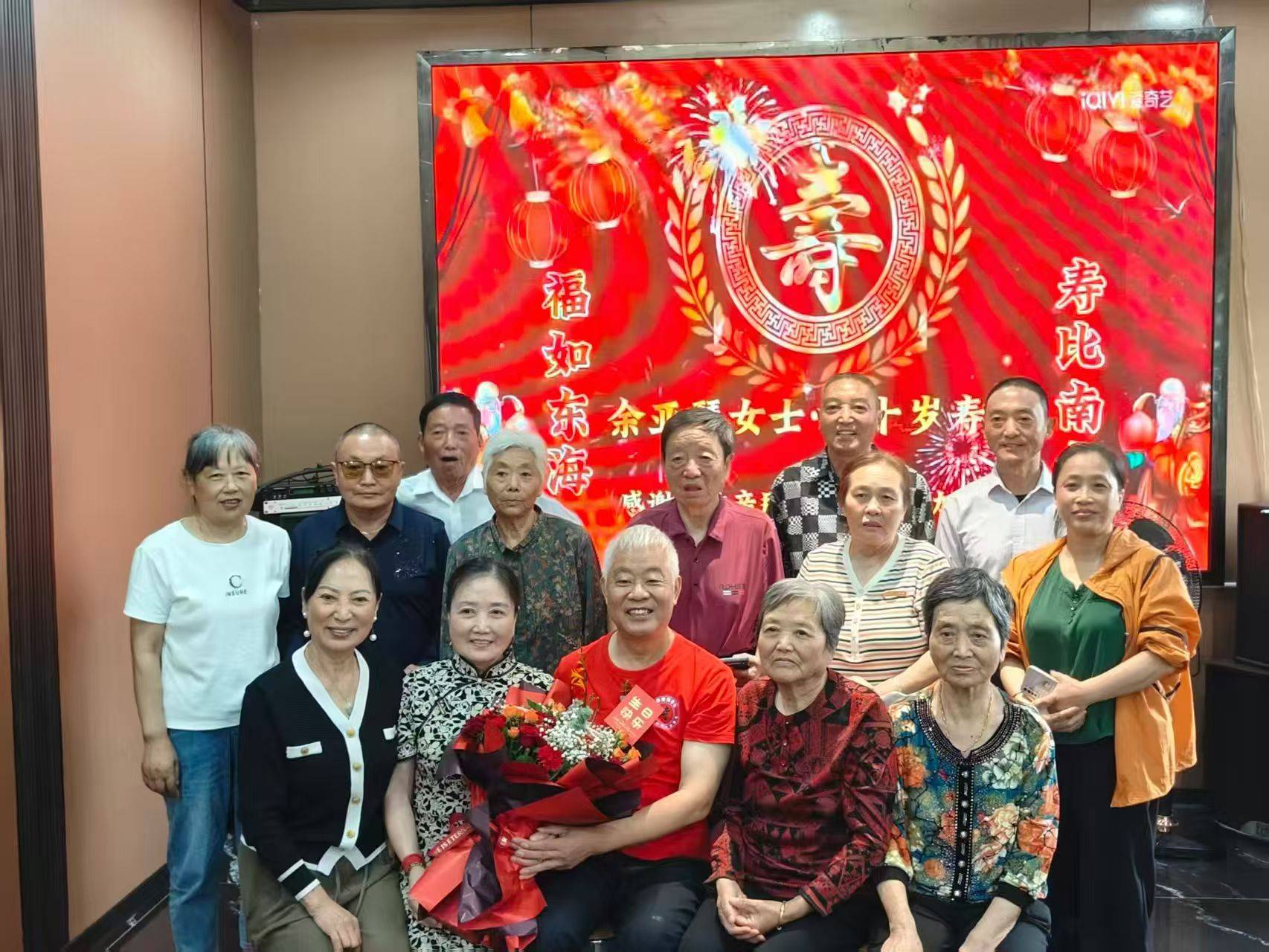 德贤厚道,教子相夫惠。媳爱孙喜友敬,幸福如意。社区名达,鼓乐响街市。叟开心,醉同眠,恩伉俪。
