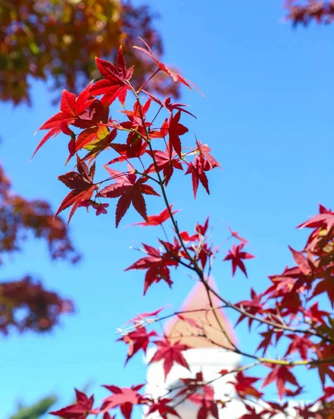 暖阳裹风红叶懒