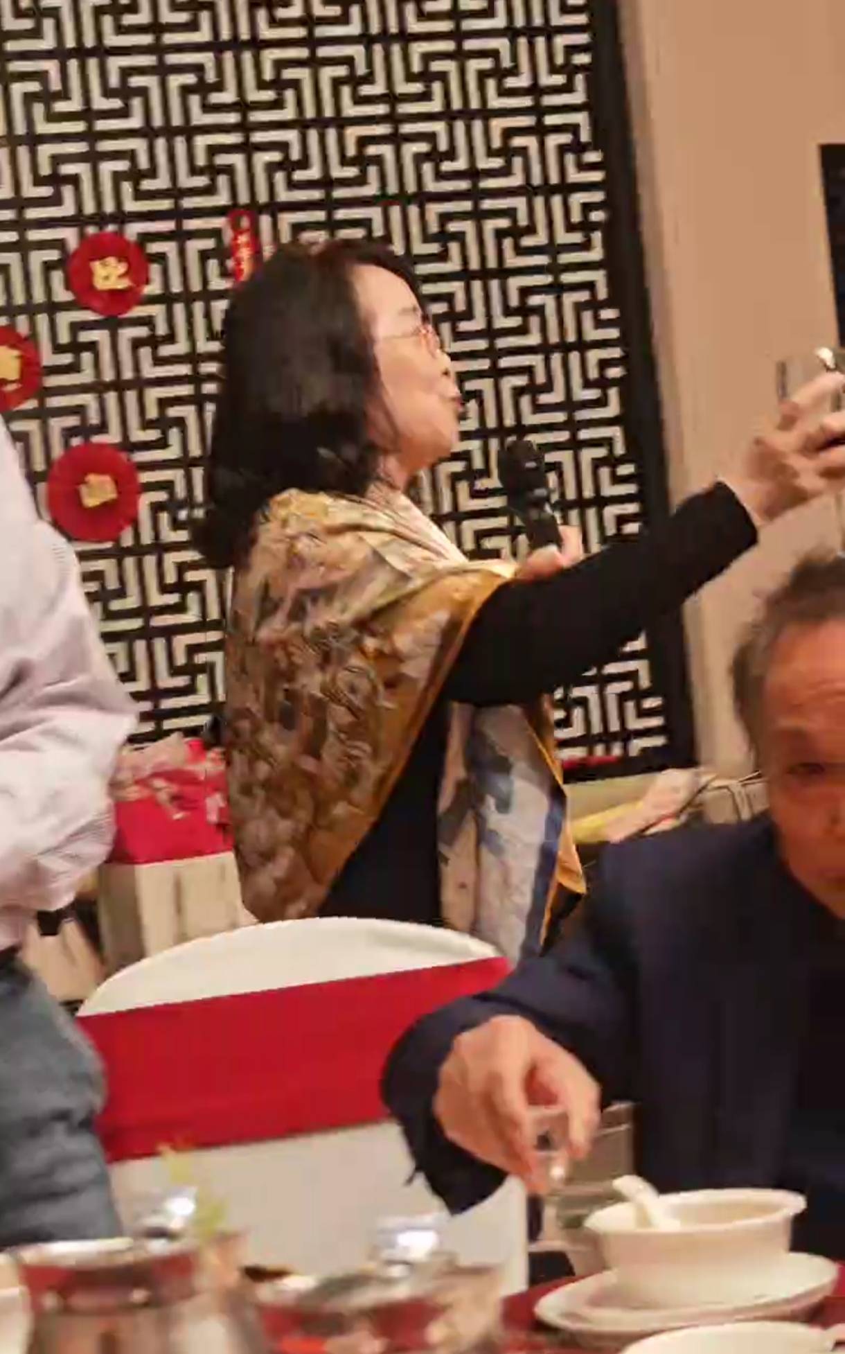 姐优韶秀家之傲,弟谢丰恩。端杯快把贺词尊。祝长寿,若昆仑。