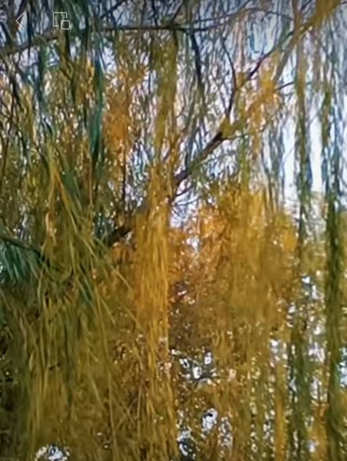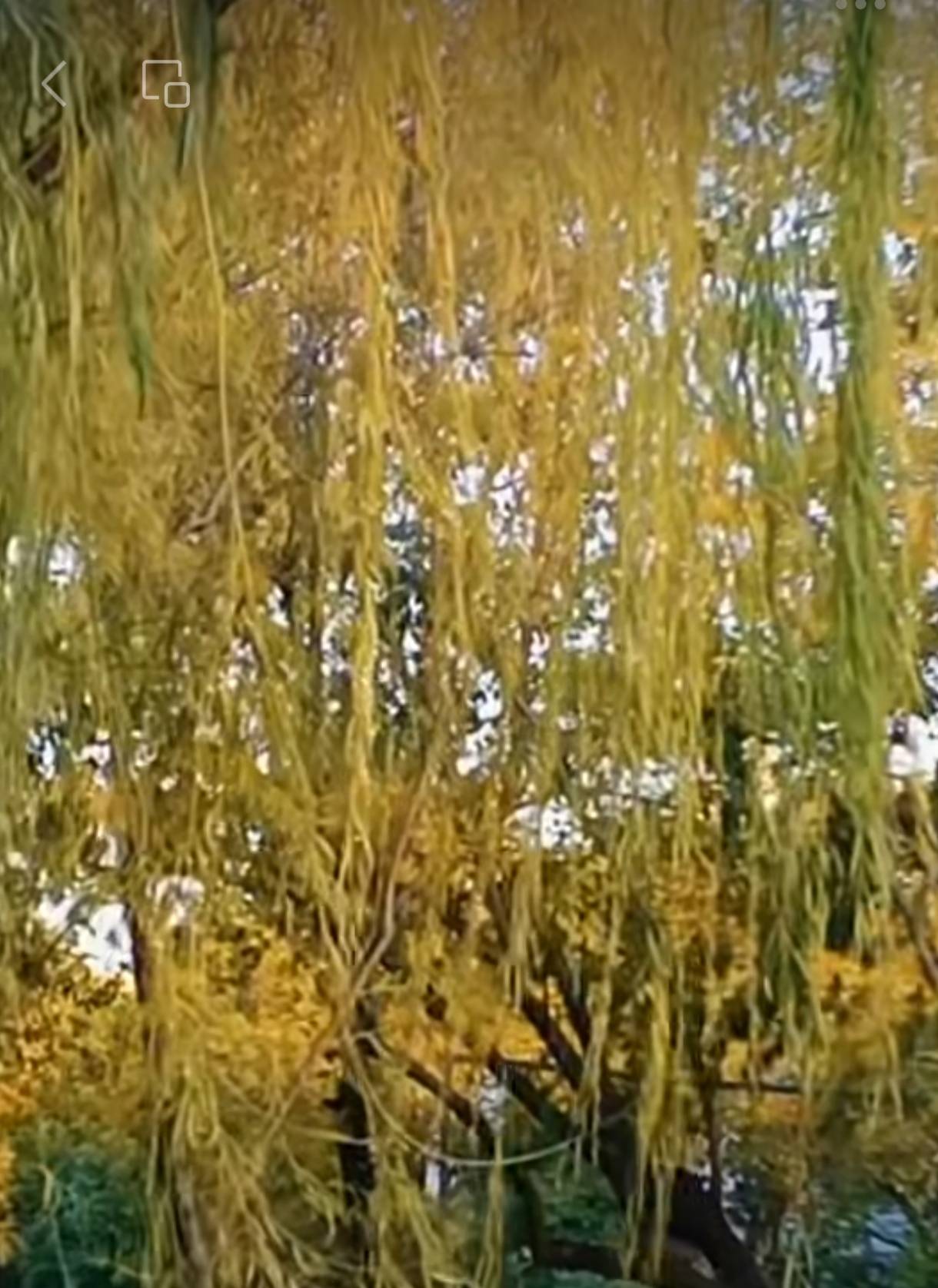 又冬天。岸上柳,随风摆,逐身残。戴金挂铜虽彩,失青颜。满头发,渐枯蔫。