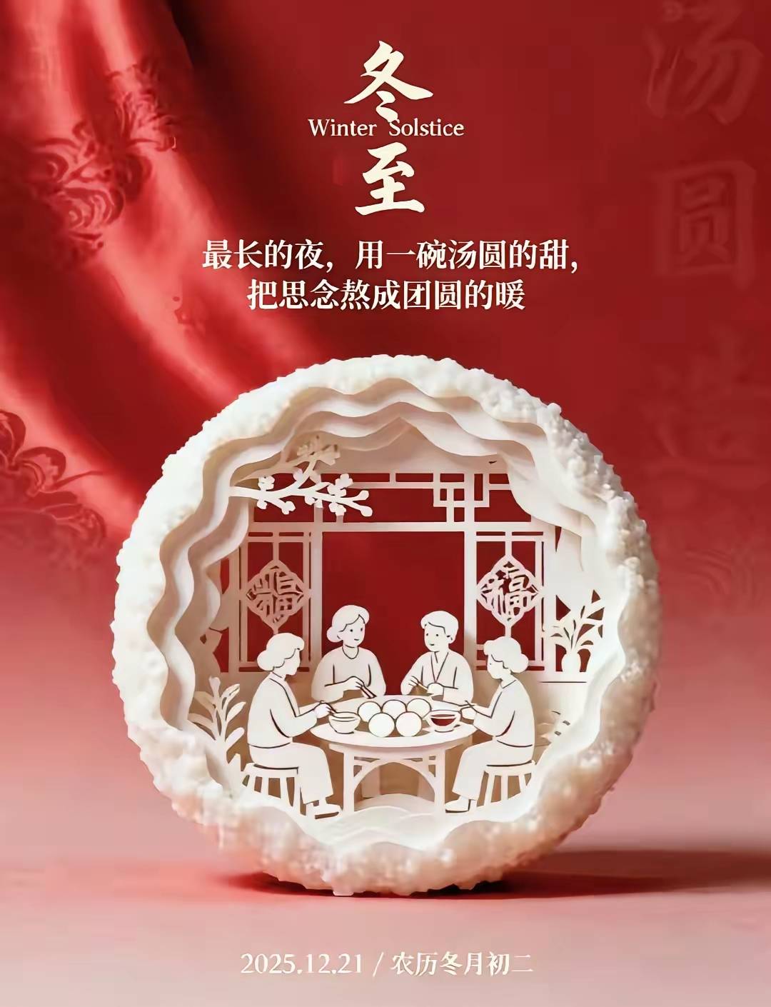 大如年是民间意。自古皇天祀。不分朝野礼相同,列祖列宗祠祭。三杯冬酿,汤圆饺子,庆贺平安岁。