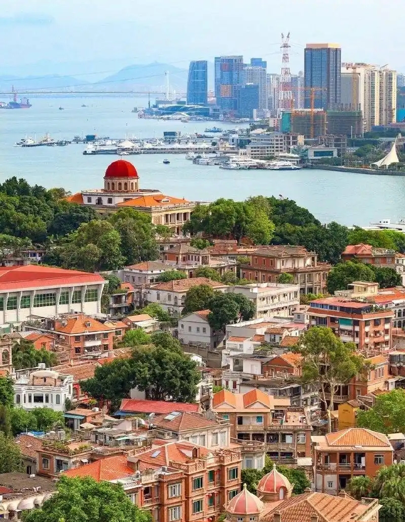 终圆梦。琴岛旅游红捧。今日洋楼成一宠。赴临诗意涌。