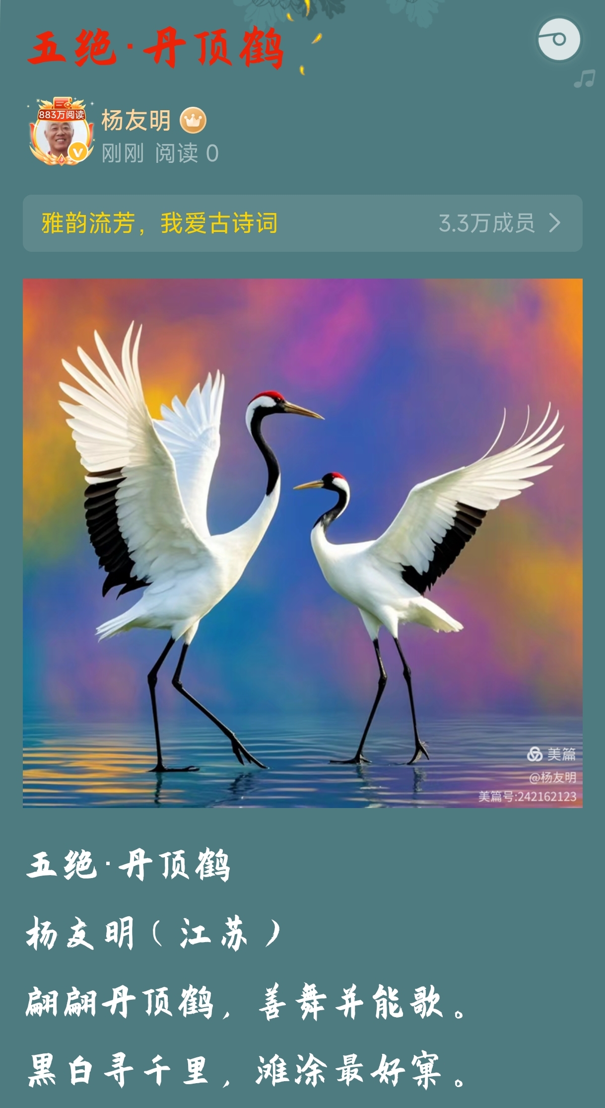 杨友明诗词的质朴风格,主要通过直白的语言表达和贴近生活的内容选取两点核心体现,无复杂辞藻与隐晦手法,情感和意趣一目了然。