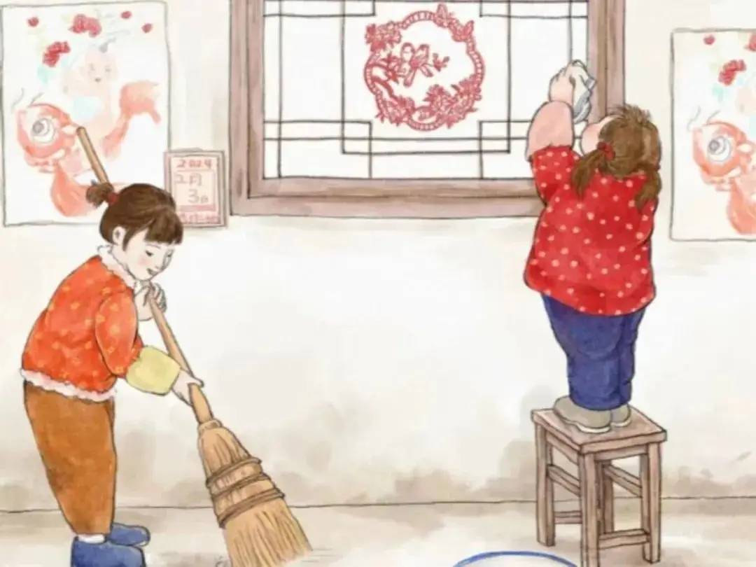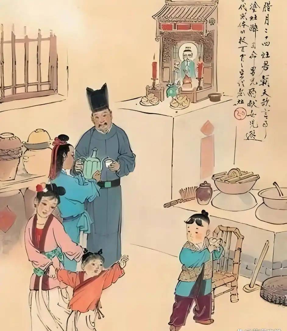 除尘在小年,鱼肉灶王前。