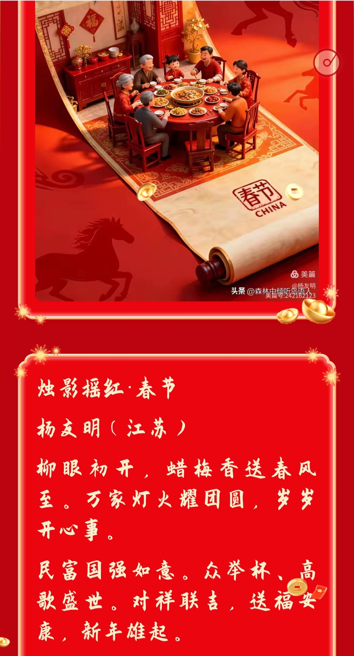 杨友明诗词的研究价值,在于它既是文学文本,又是社会史料;既守传统格律,又开当代新境;既写个人心迹,又反映时代风云,为研究21世纪中国旧体诗创作、社会文化变迁、地域文学与大众诗学提供了完整、鲜活、可长期深挖的典型样本。