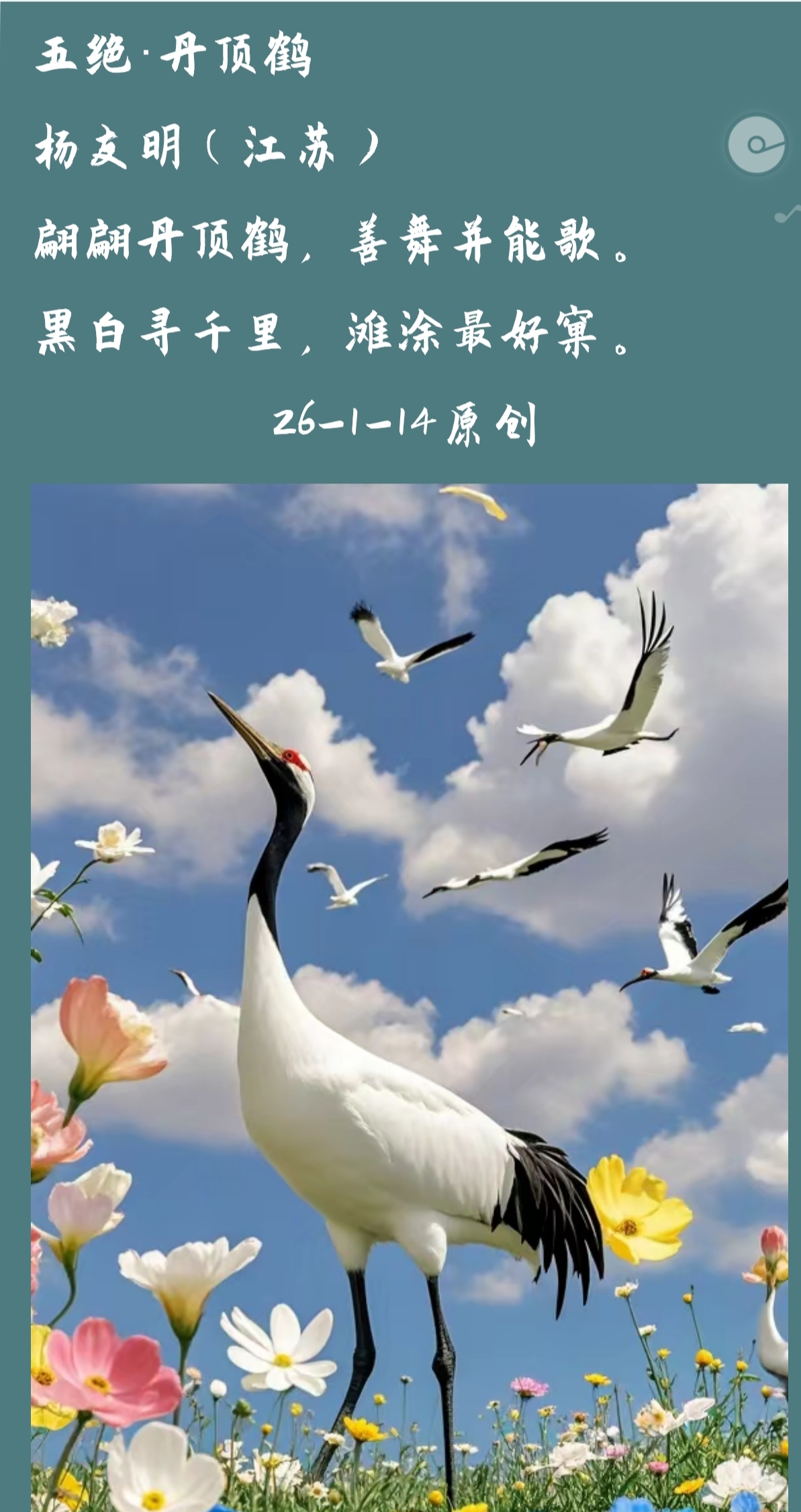 在严格的五言格律中融入现代意象,既保留了“平仄押韵”的韵律美,又通过意象的反差感制造新鲜感。例如“神舟冲碧汉,网络接寰球”,“神舟”(科技意象)与“碧汉”(古典星空意象)、“网络”(现代互联意象)与“)寰球”(古典地域概念)结合,让传统诗体不再局限于怀旧,而是具备了表现当下、展望未来的艺术能力,为五绝这一古老体裁注入新活力。