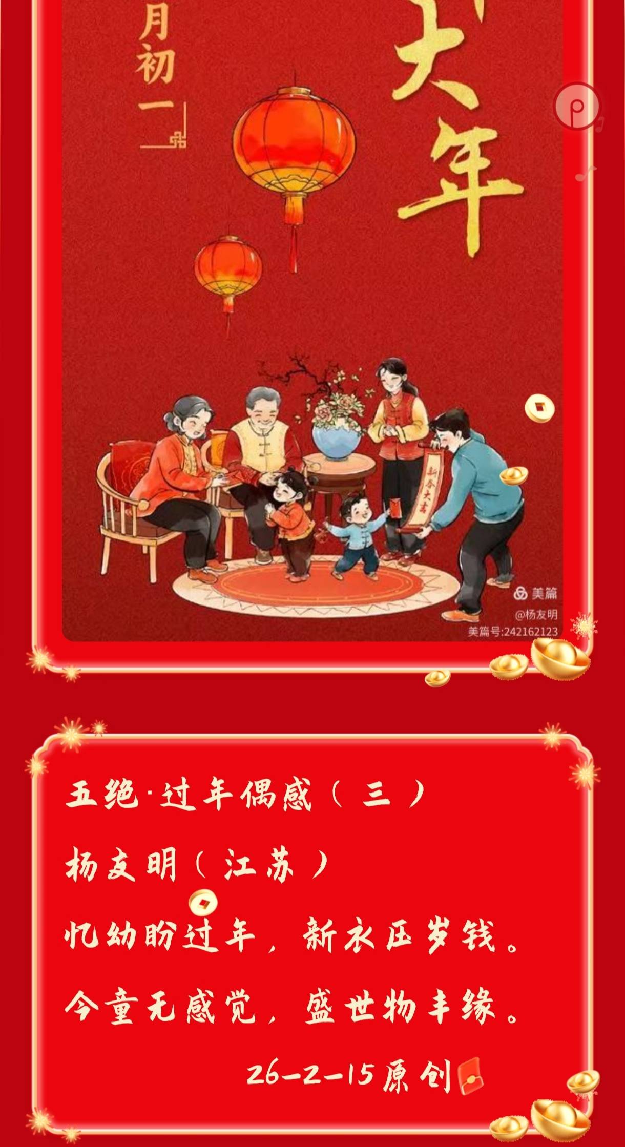 ·《跨年音乐会》:“跨年音乐会,苏大彻高歌。姐弟登台唱,狂欢有老哥。”通过描绘音乐会场景,体现了亲情带来的温暖与欢乐。