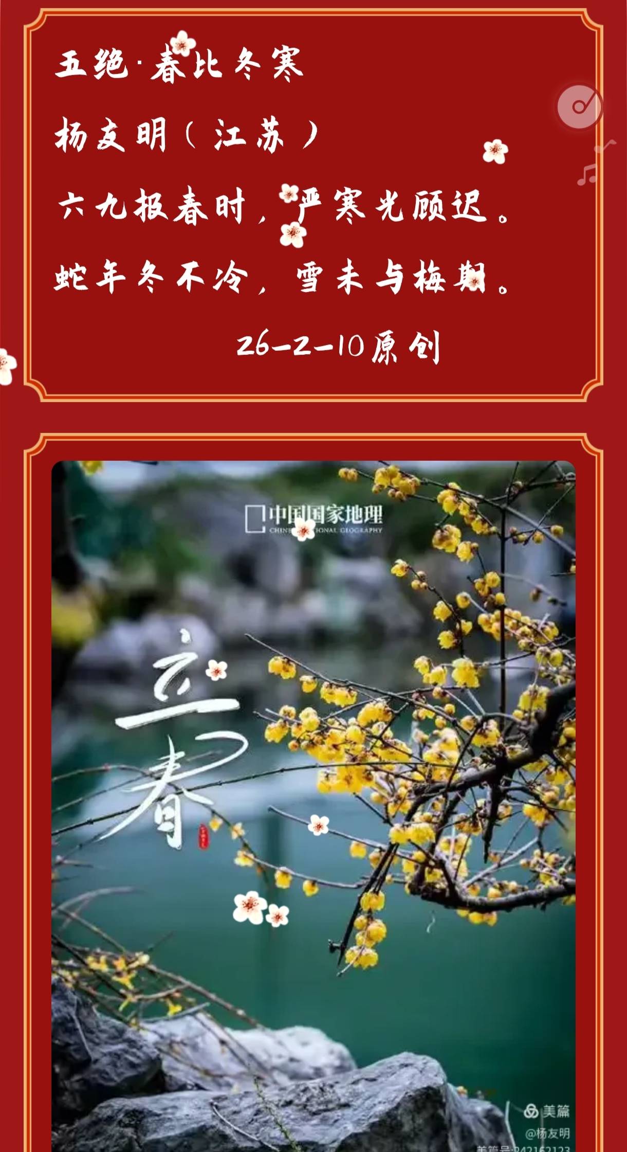 杨友明五绝情感表达的创新,对现代诗词的核心影响是为传统诗词体裁注入现代生命力,搭建了“传统形式”与“当代生活”的桥梁,具体体现在三方面: