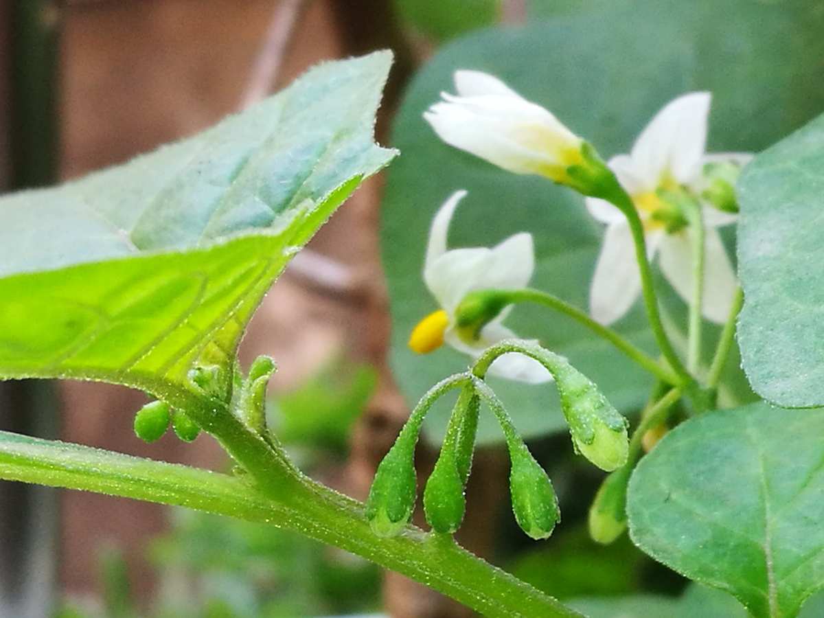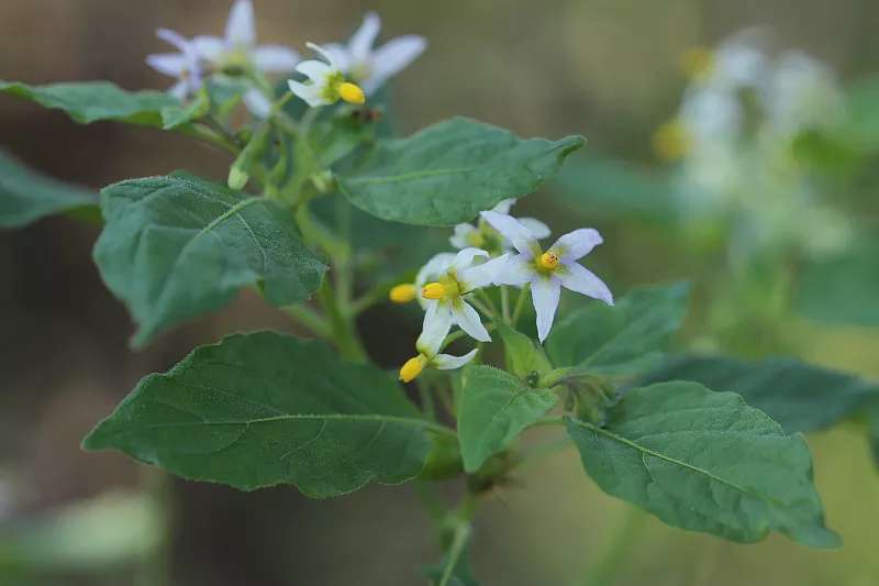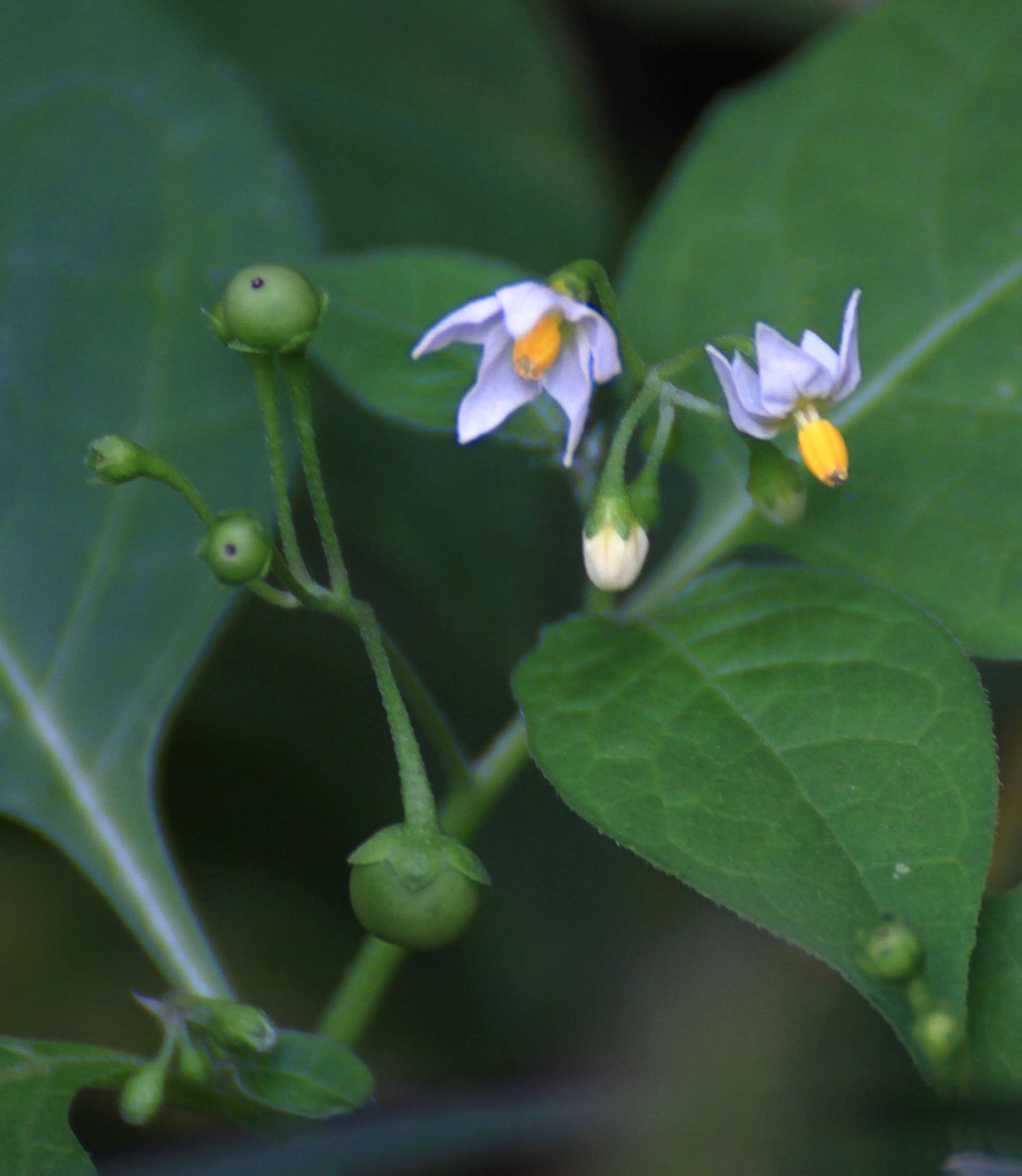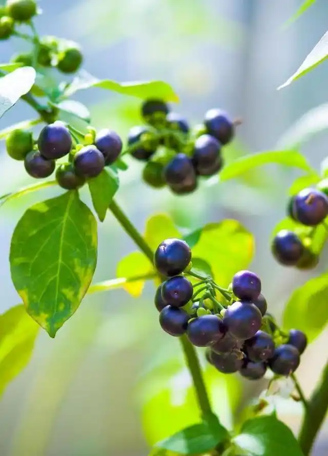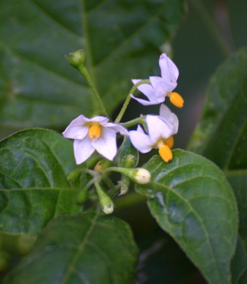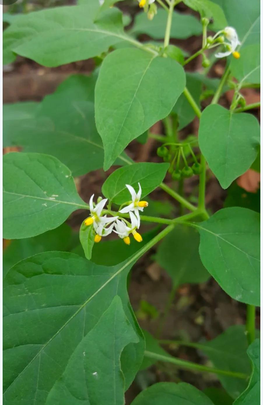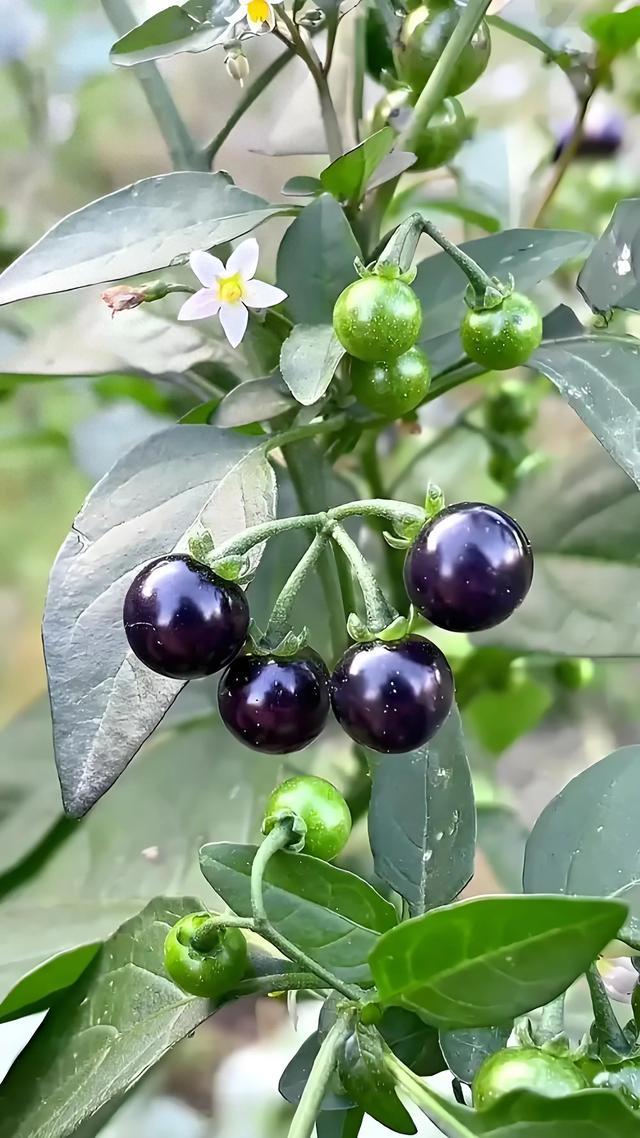 绿叶乱,舞龙葵。葳蕤园里白蛾追。青果紫珠根蔓梗,周身入药治伤奇。