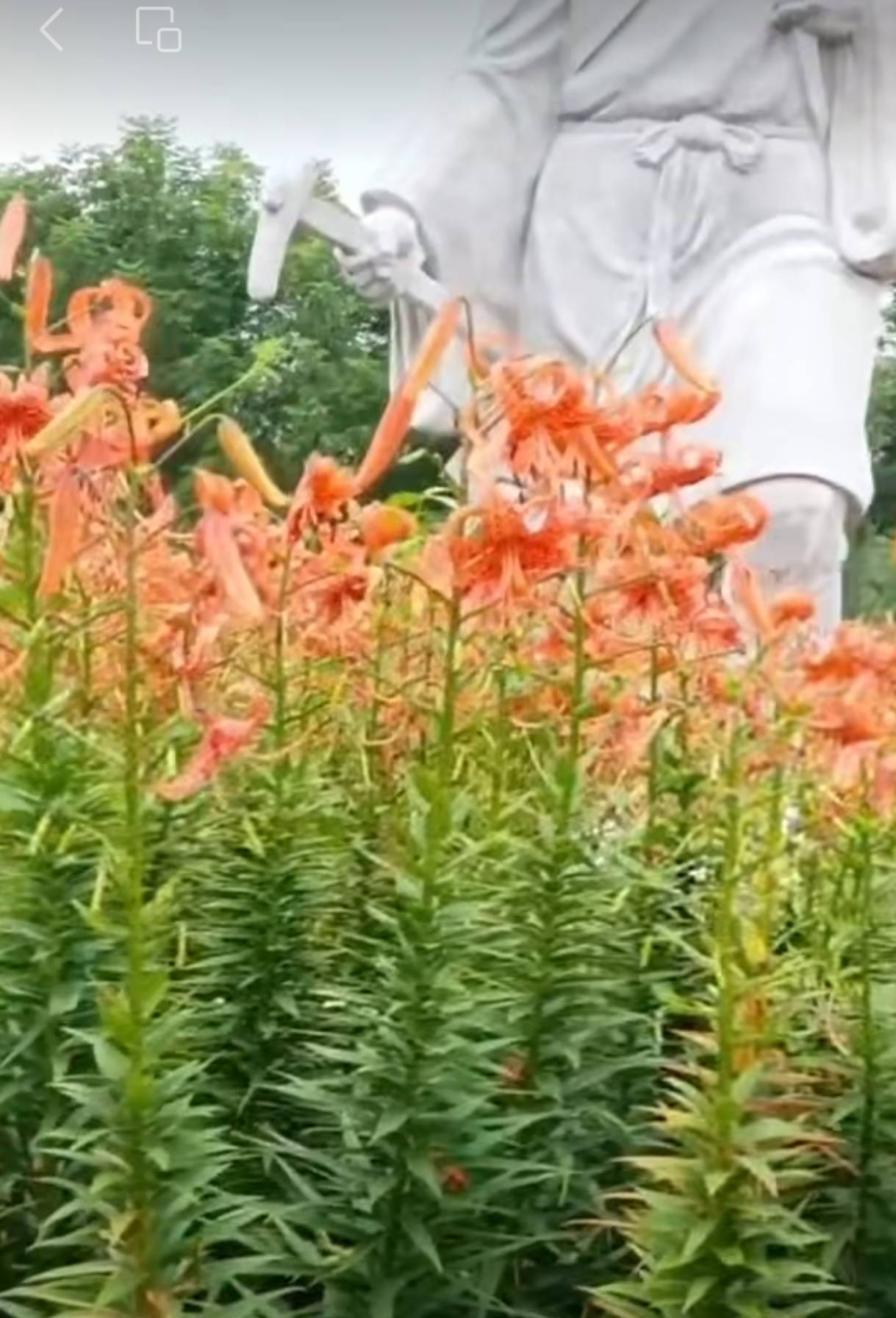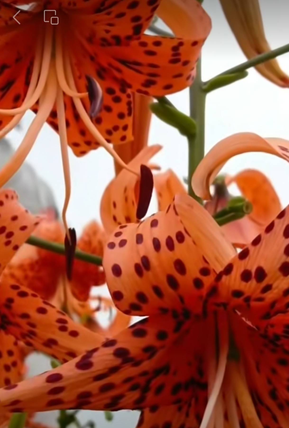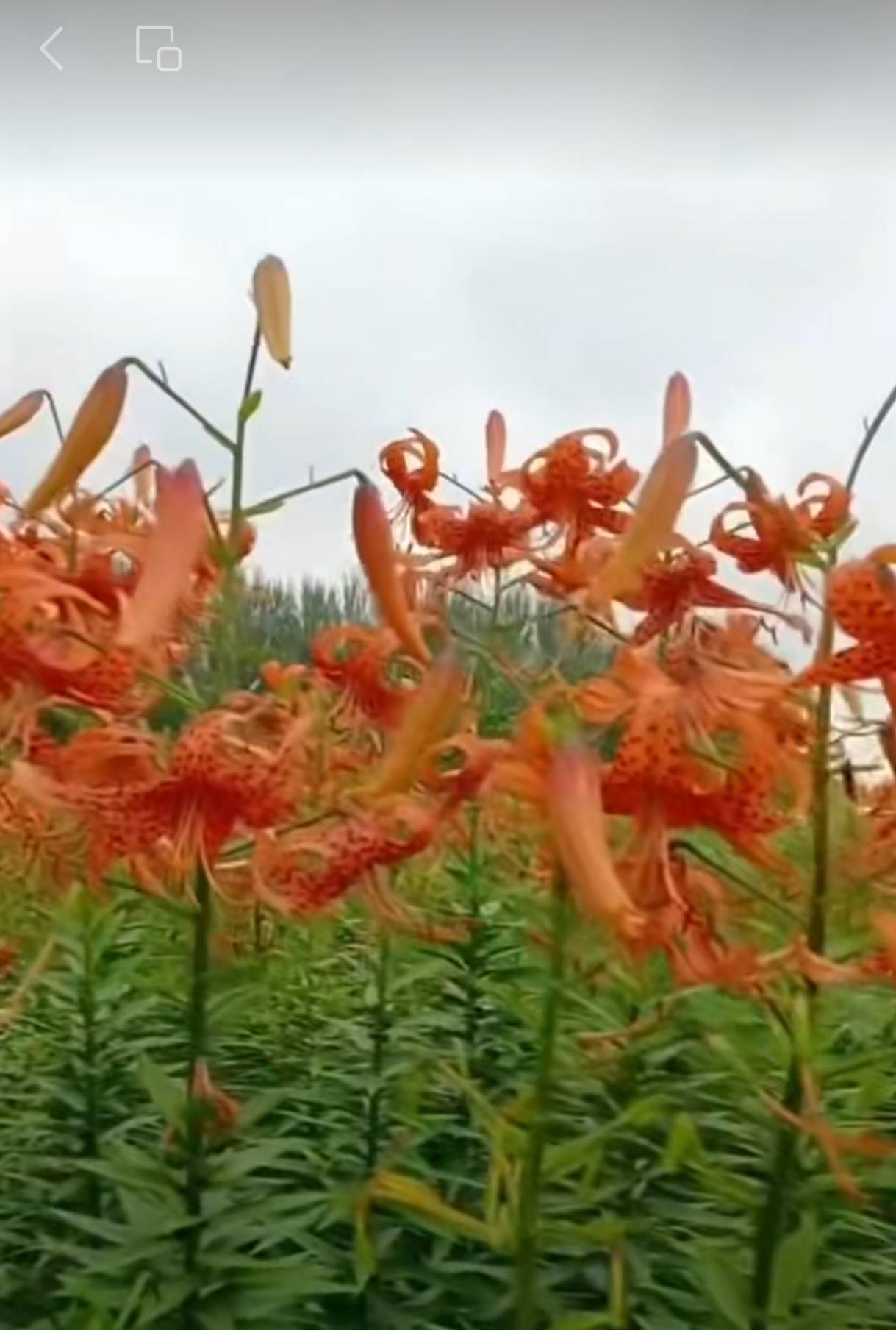 又见奇花灿,迎笑虎斑黄。百合卷丹名,今朝才晓,异珍名卉,瑶溢芬芳。