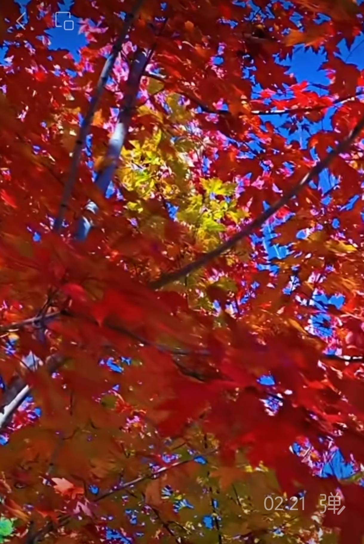 遍野红枫尽染。登上云楼遐瞰。万里风光览。烧原燃岭,夺目炎焰。到处红旗漫卷,壮丽山河撼。