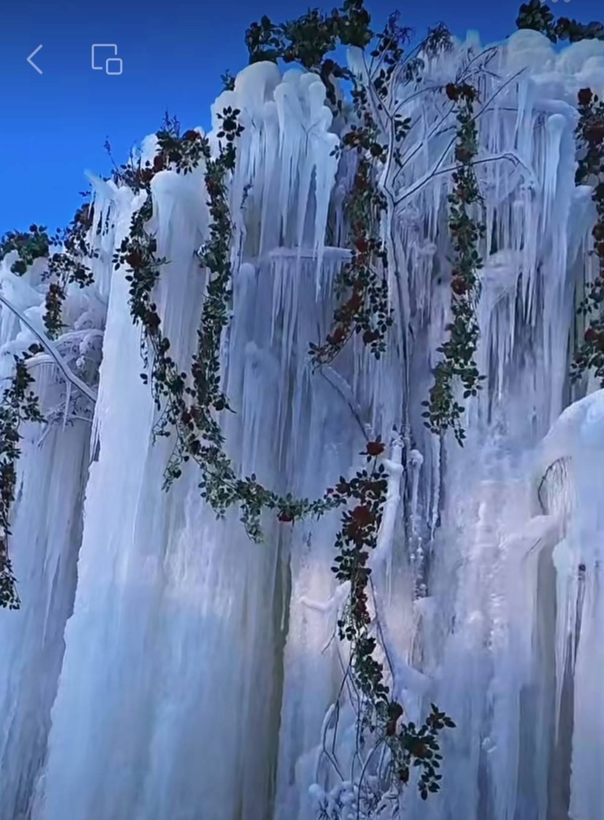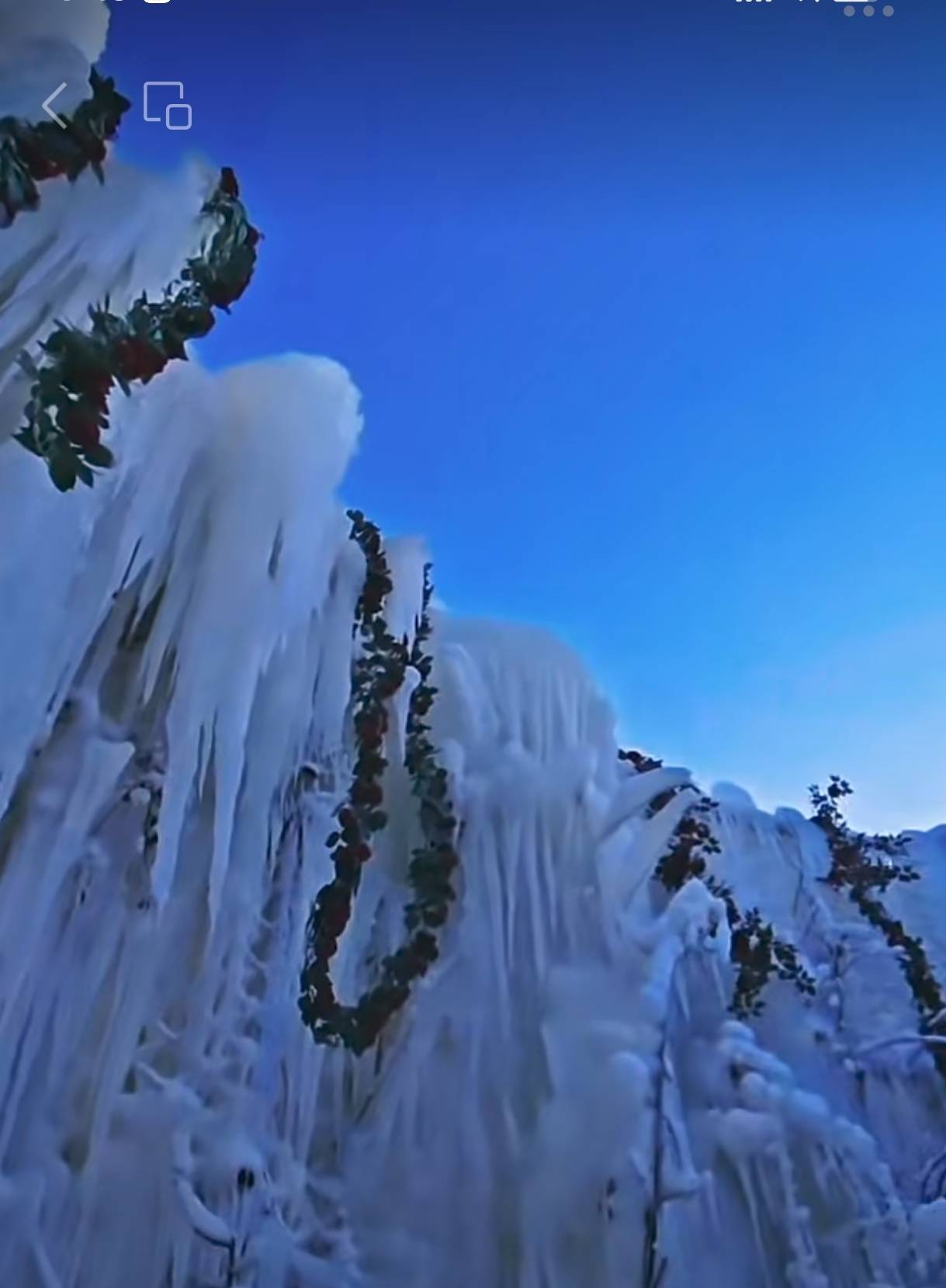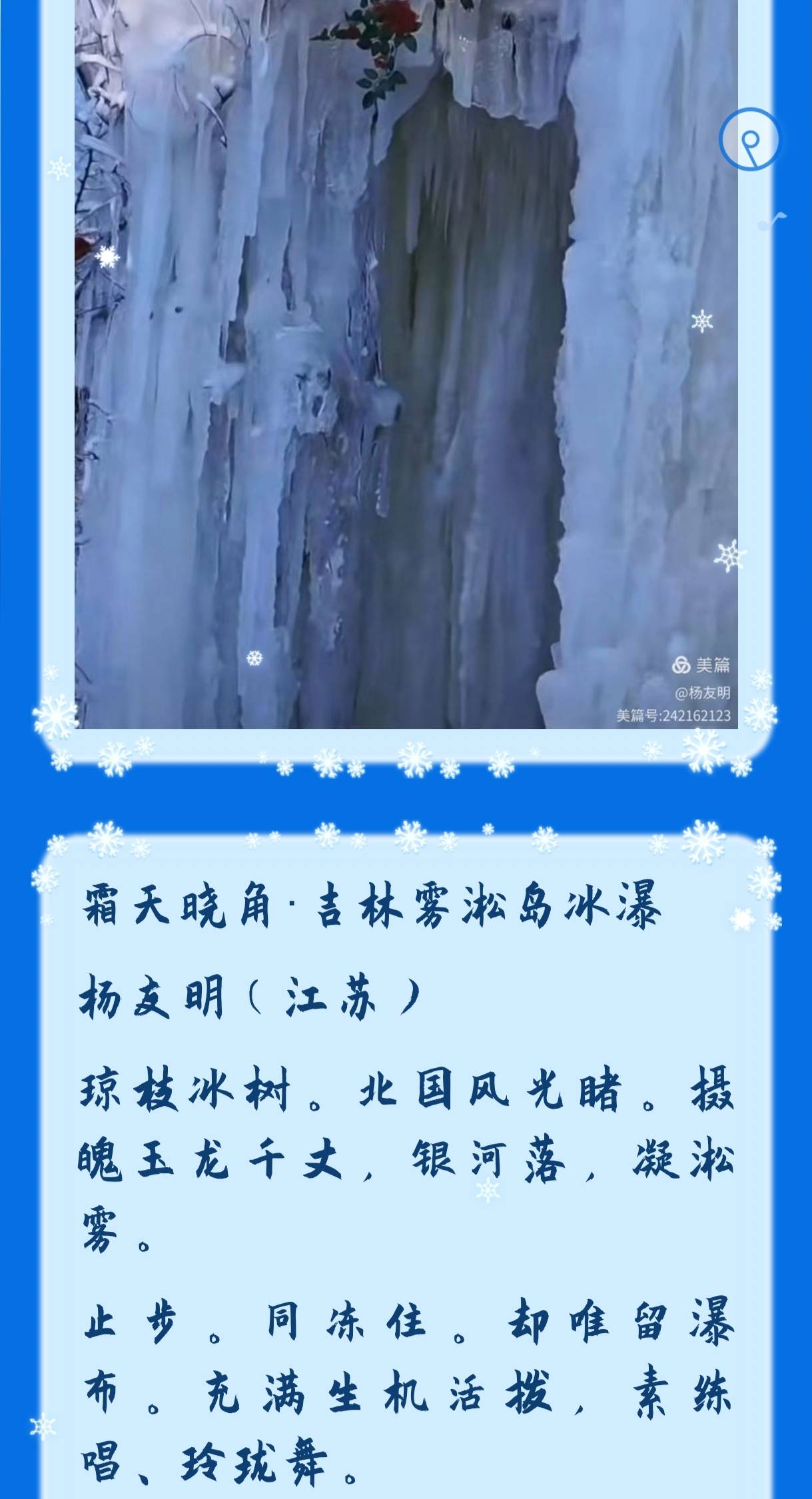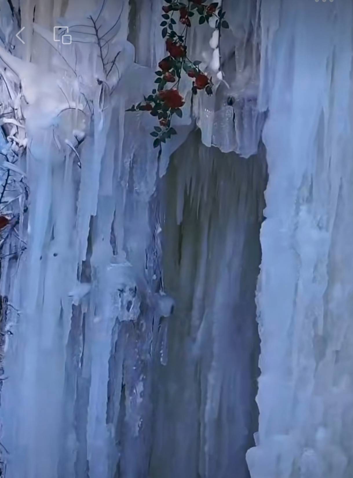 止步。同冻住。却唯留瀑布。充满生机活泼,素练唱、玲珑舞。