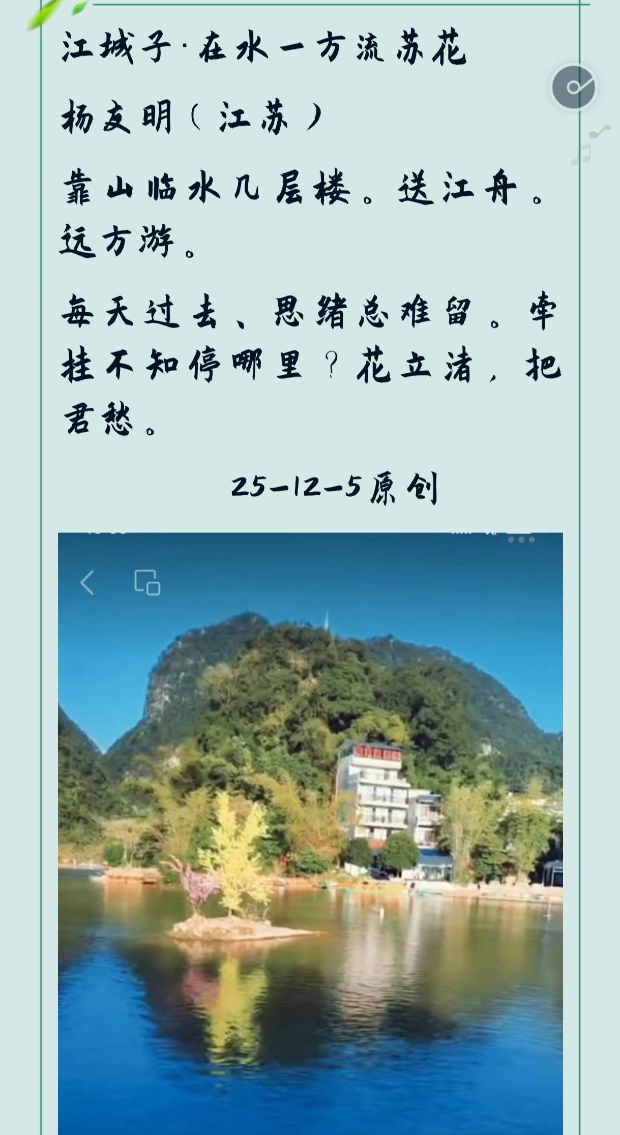 此外,他的作品中还常有地域文化意象的运用,如盐城乡土风情或现代与传统意象的结合。这些元素提升了诗词的艺术价值和表现力。