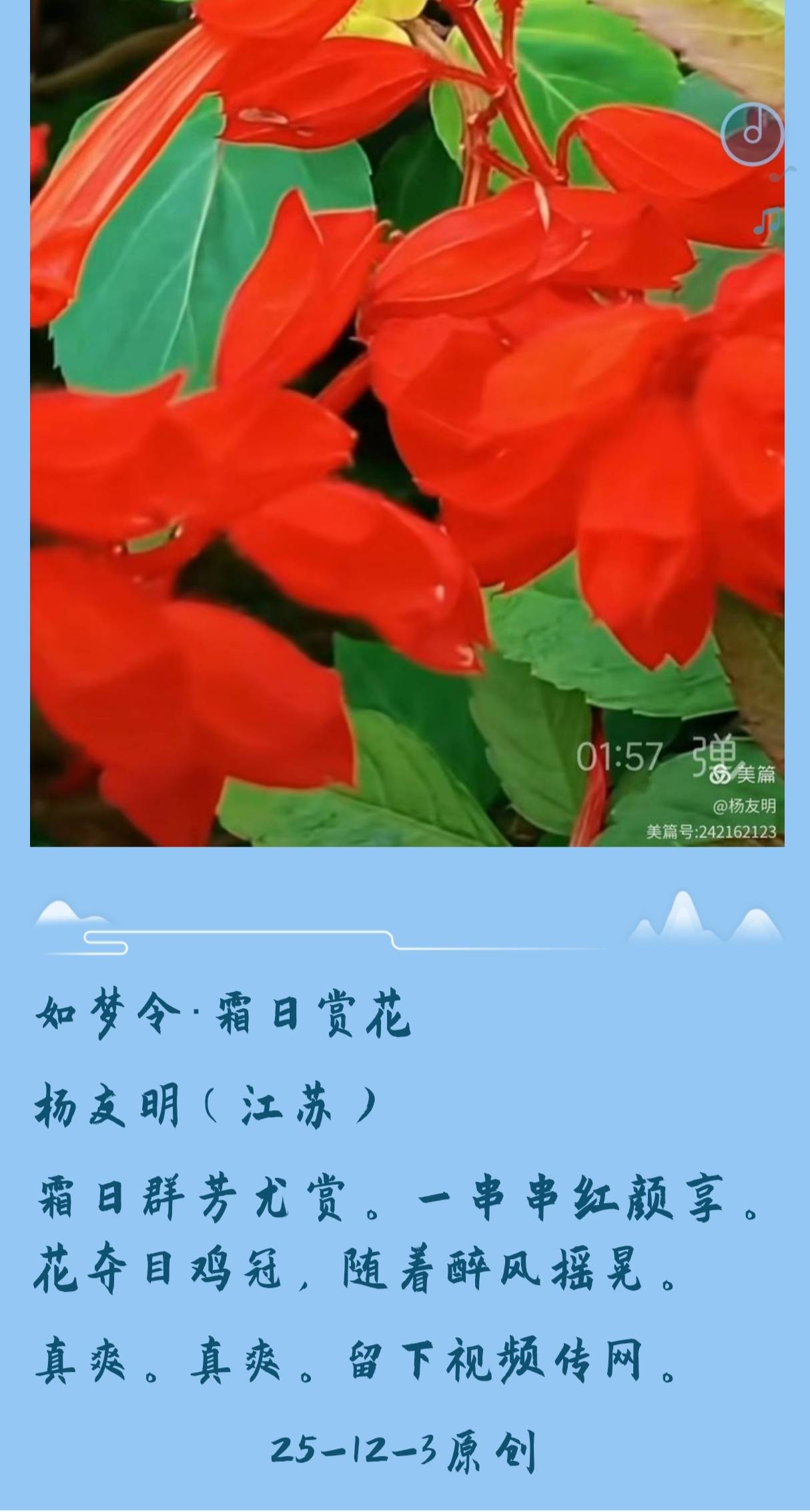2.题材选择:杨友明可能更倾向于个人生活感悟和身边自然景象,而其他诗人可能涉及更广泛的历史、社会、哲学等领域。