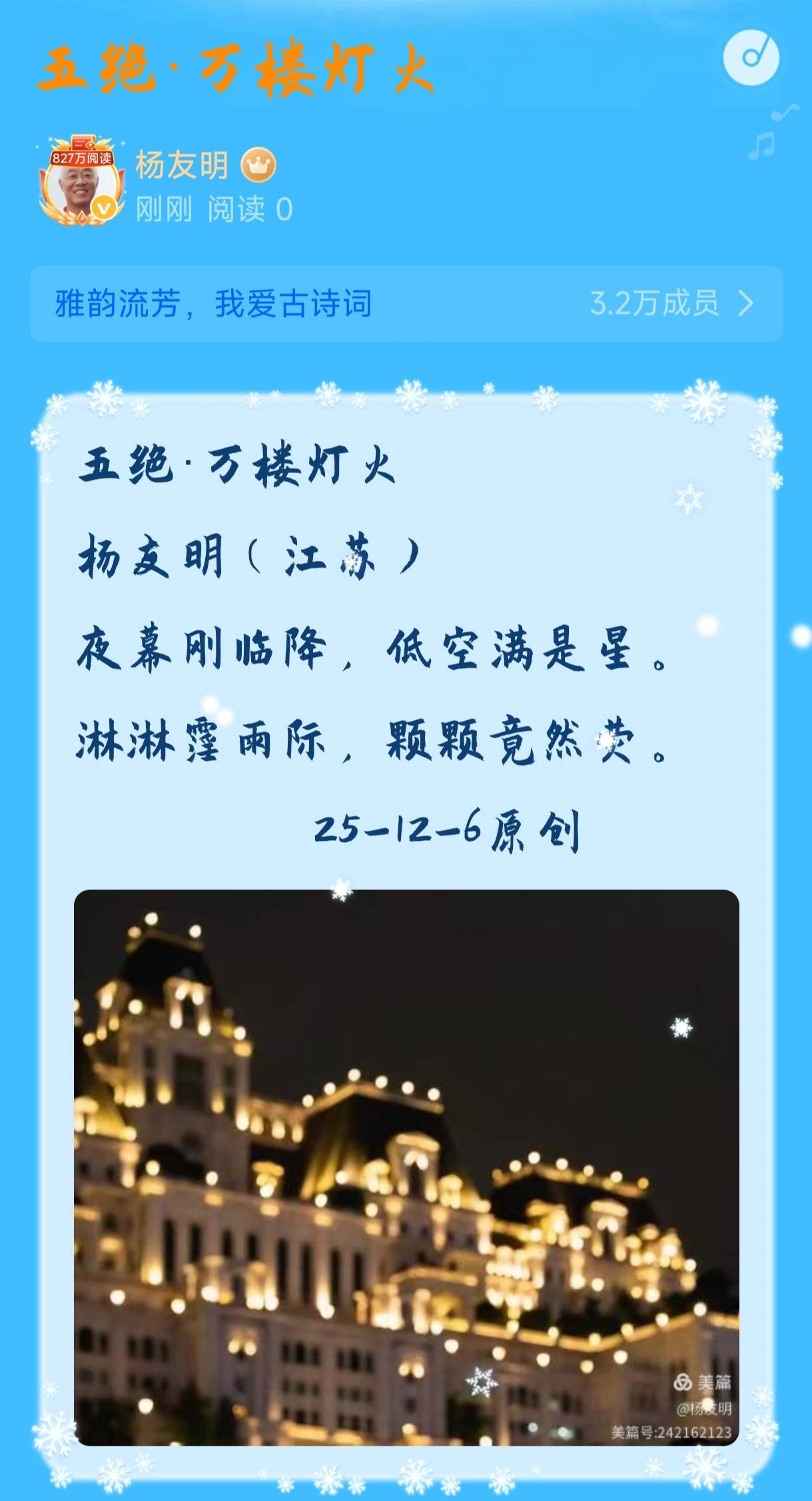 杨友明有多首诗词体现了质朴风格,如《五绝·城中征留地》《赞成功·庆抗战胜利八