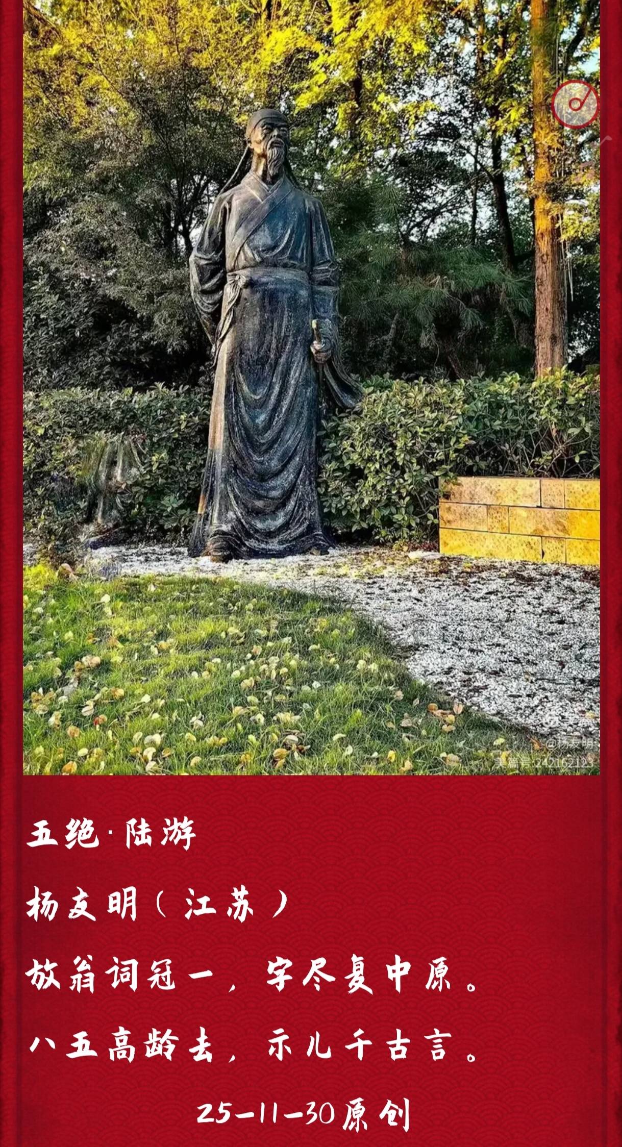 《赞成功·庆抗战胜利八十周年》:“抗倭胜利,八十周年。中华民族换新颜。国强民富,家社平安。全球瞩目,立世高端。雪耻尤记,烽火连天。日倭烧杀实凶残。保家驱寇,抗日身捐。耀华万古,告慰轩辕。”用词朴实,直接叙述抗战胜利八十周年这一事件,回忆抗战烽火与日军暴行,歌颂保家卫国的烈士,情感真挚,以直白的表述传达出对历史的铭记和对国家强盛的感慨。
