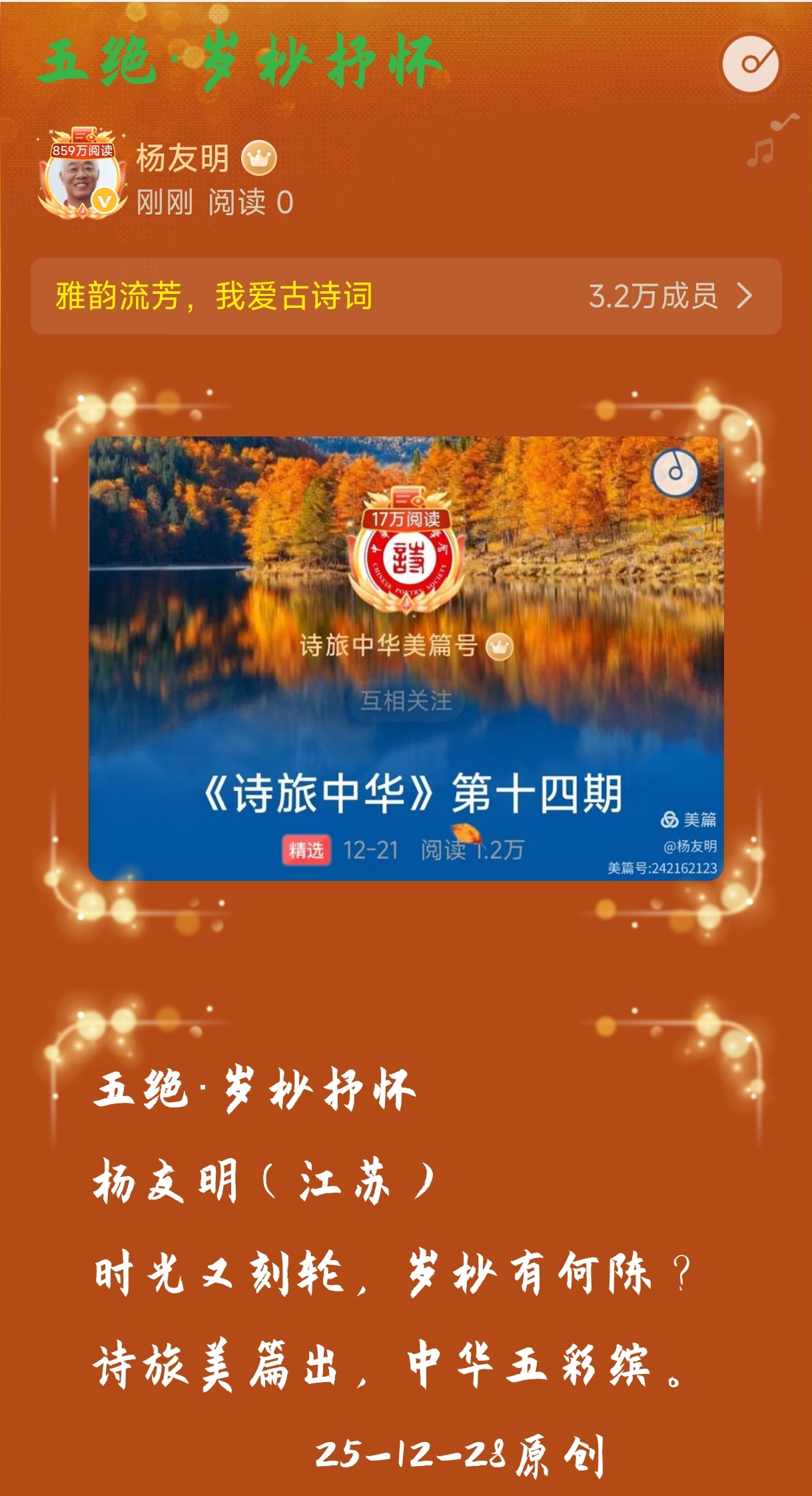 捕捉平凡情感:如诗词中涉及的“翁婆盼儿归”“诗朋酒侣相聚”等,均是普通人常见的亲情、友情场景,无刻意拔高,却因贴近生活而极易引发共鸣。