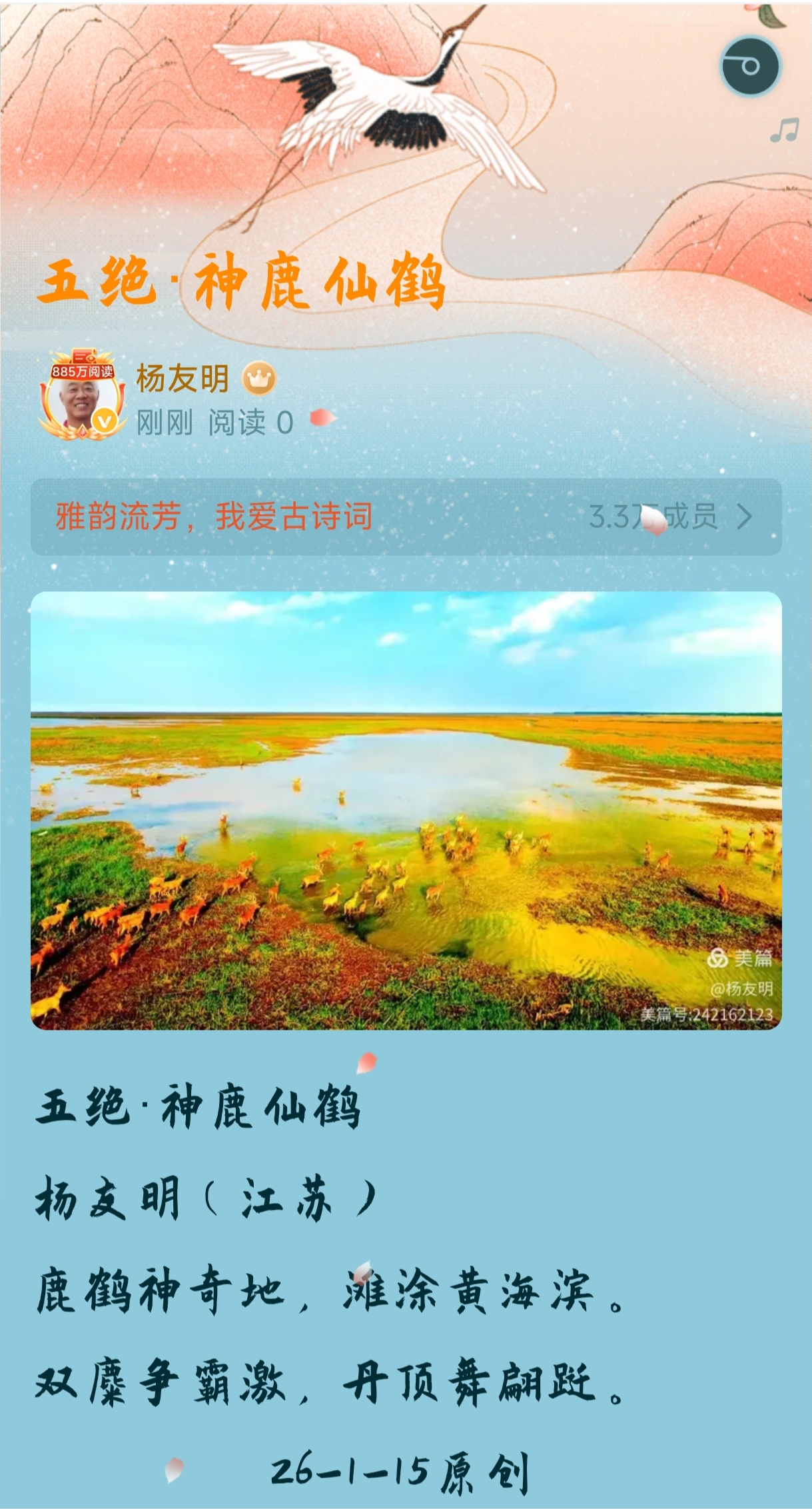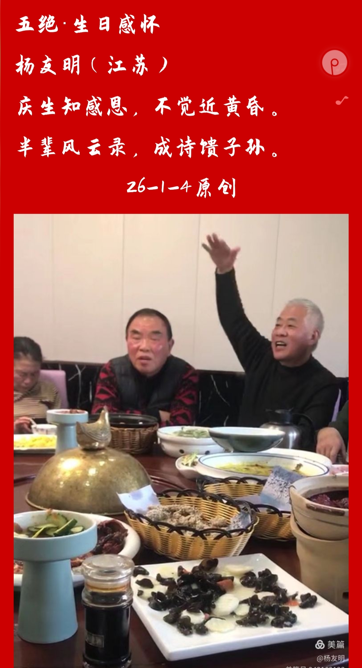 杨友明诗词的质朴风格,主要通过直白的语言表达和贴近生活的内容选取两点核心体现,无复杂辞藻与隐晦手法,情感和意趣一目了然。