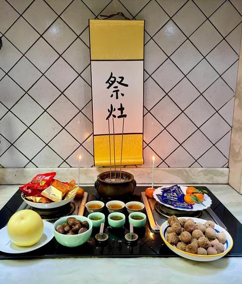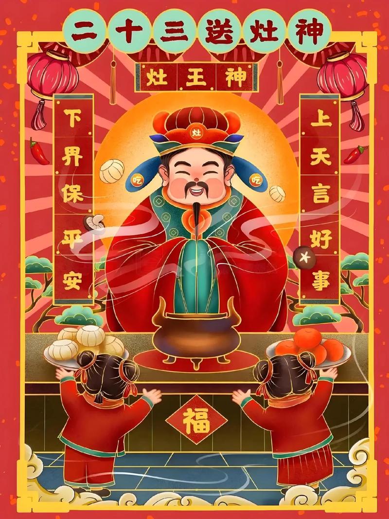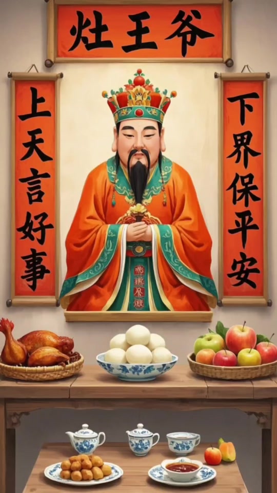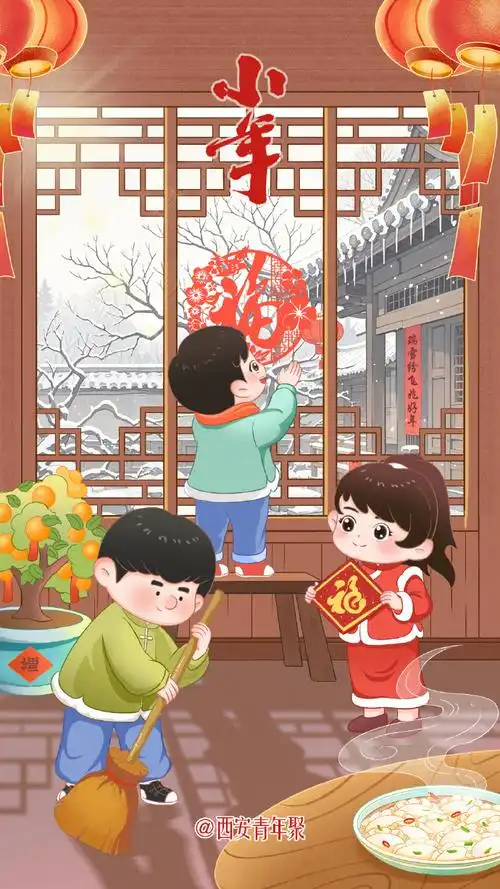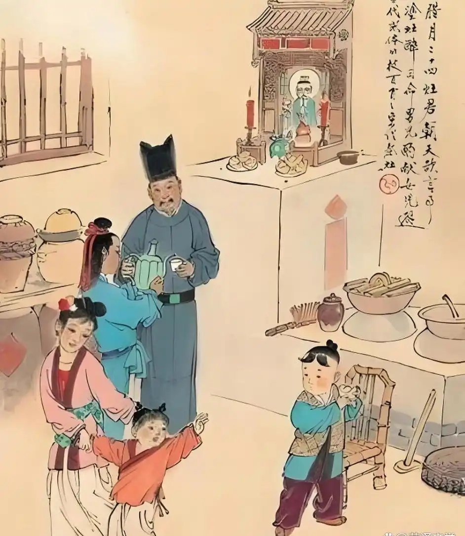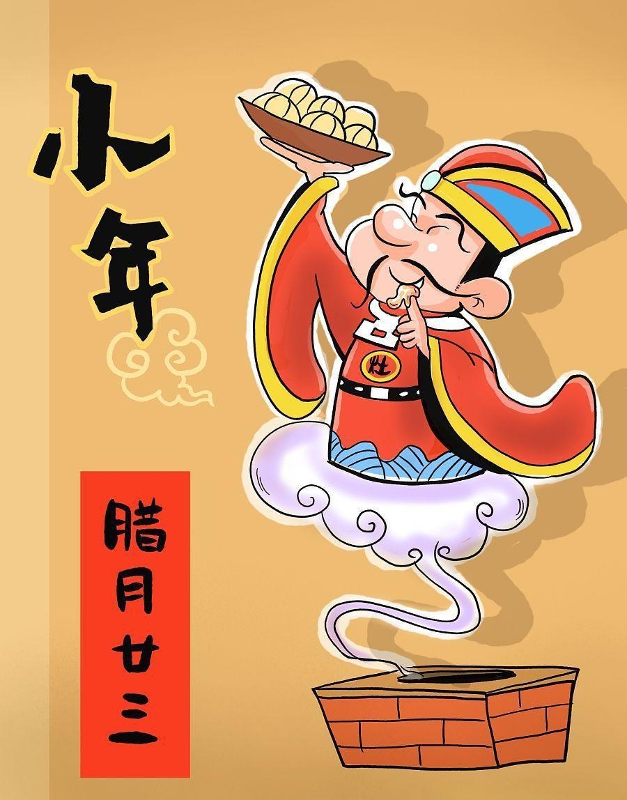 除尘在小年,鱼肉灶王前。