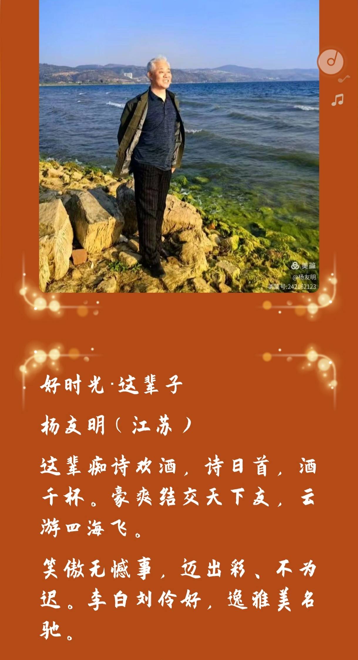 ·情感共鸣与心灵慰藉:杨友明诗词善于抒发亲情、友情等情感,情感真挚且层次丰富,能让读者联想到自身经历,产生强烈共鸣。如描写对父母的感恩之情时,以细腻笔触回忆相处点滴,使读者感受到亲情的温暖,在情感上得到慰藉。