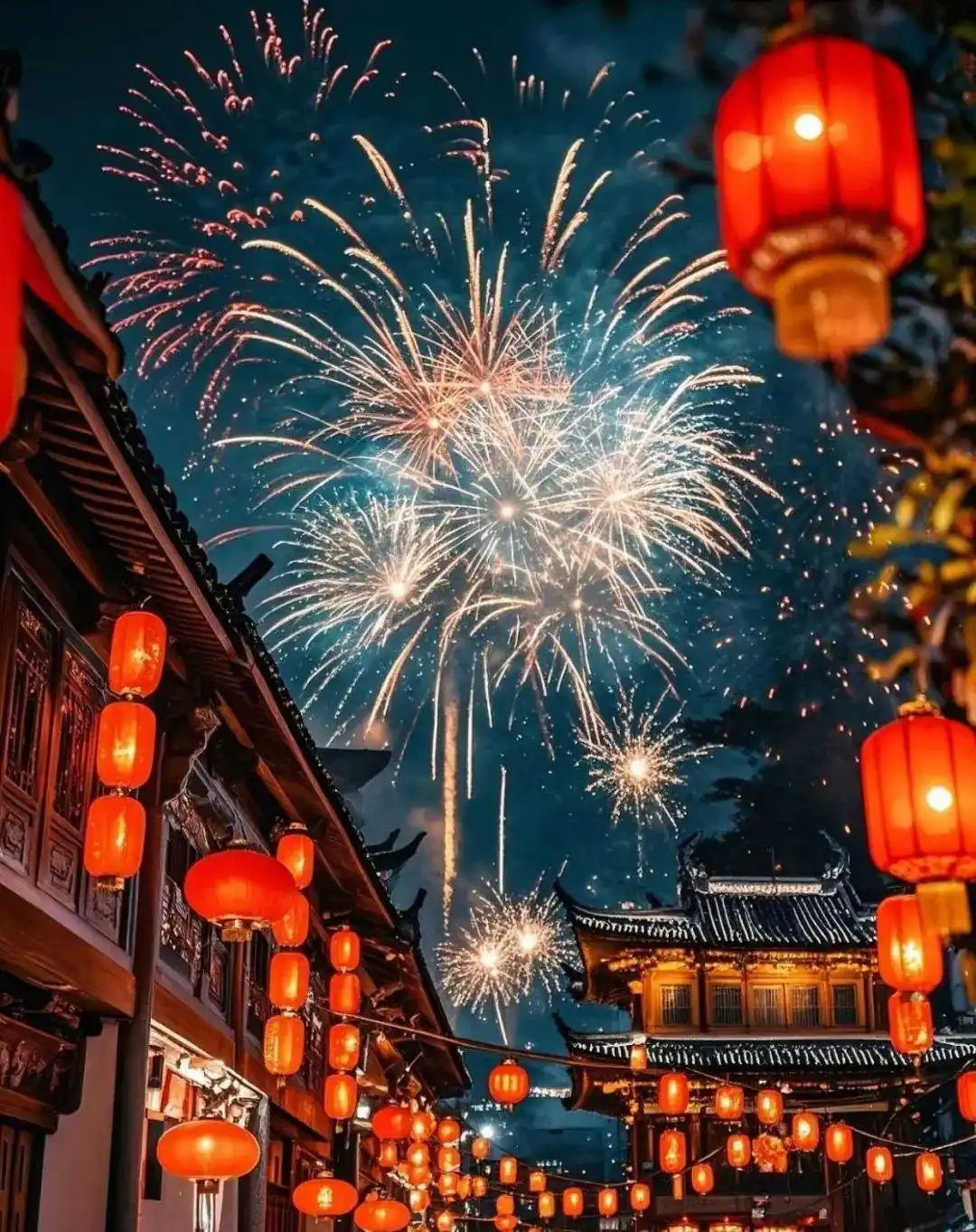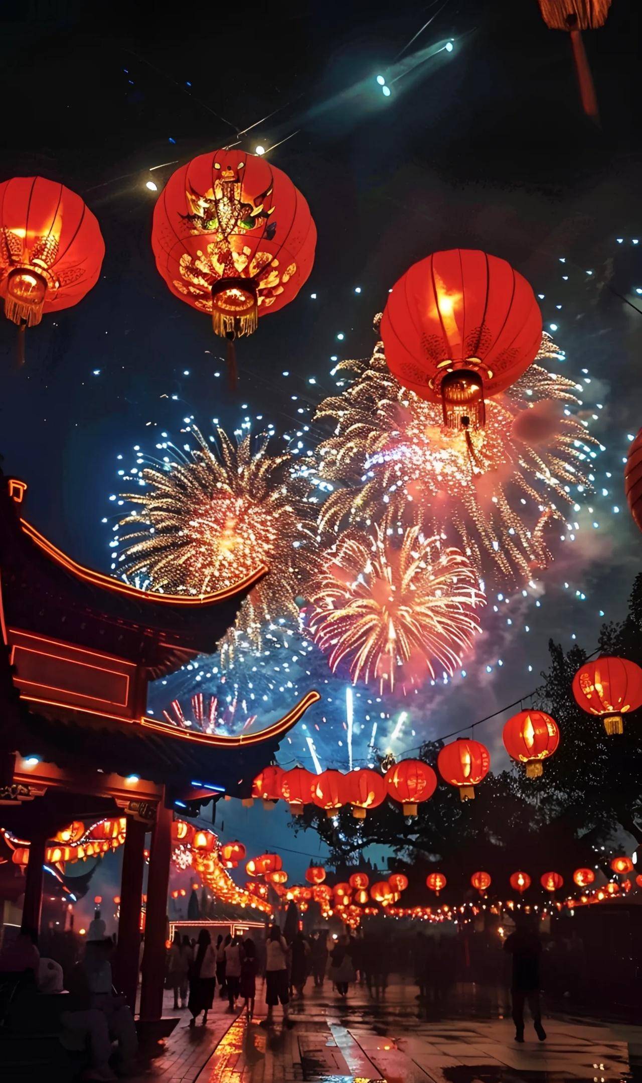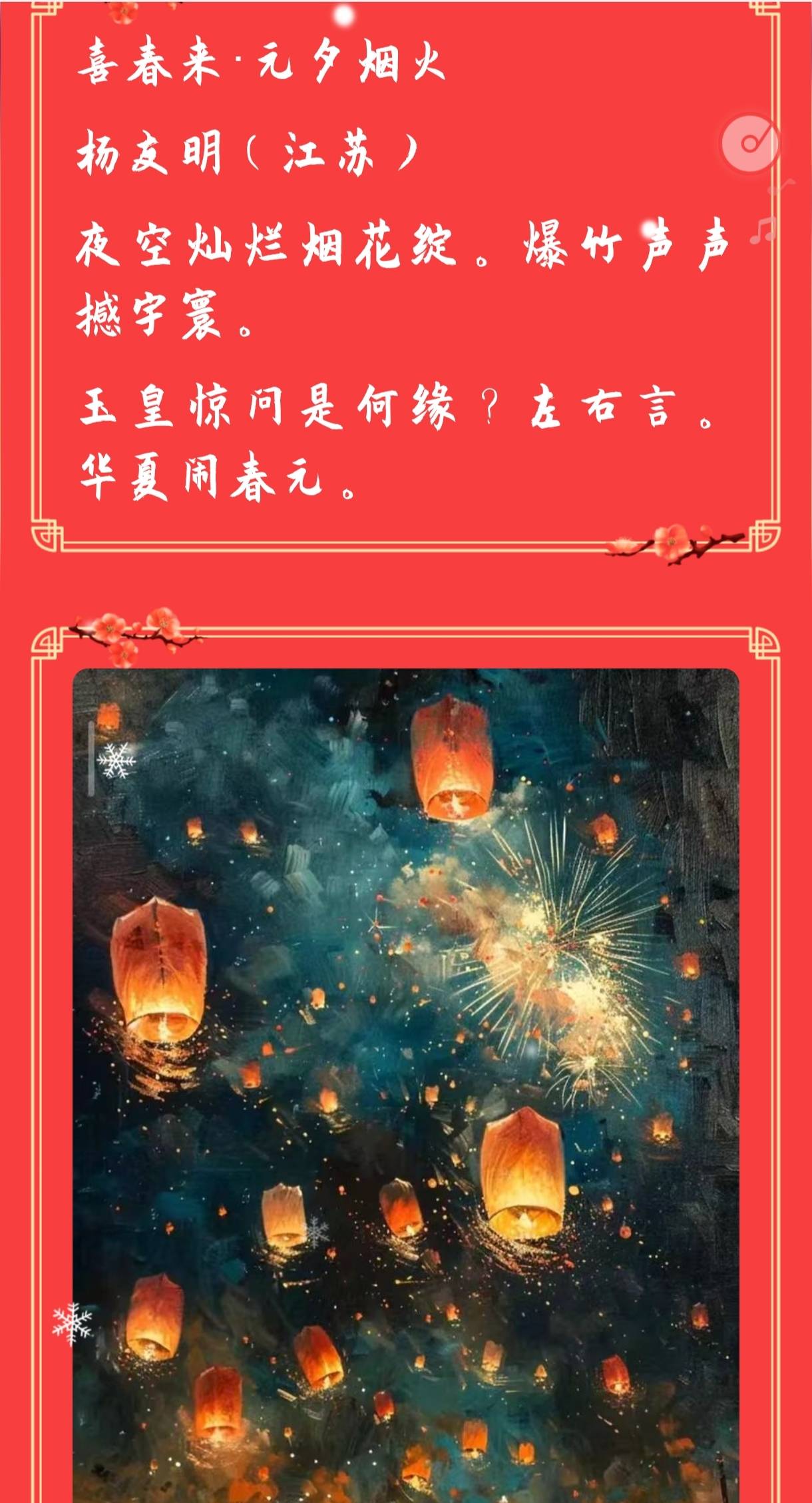 夜空灿烂烟花绽。爆竹声声撼宇寰。