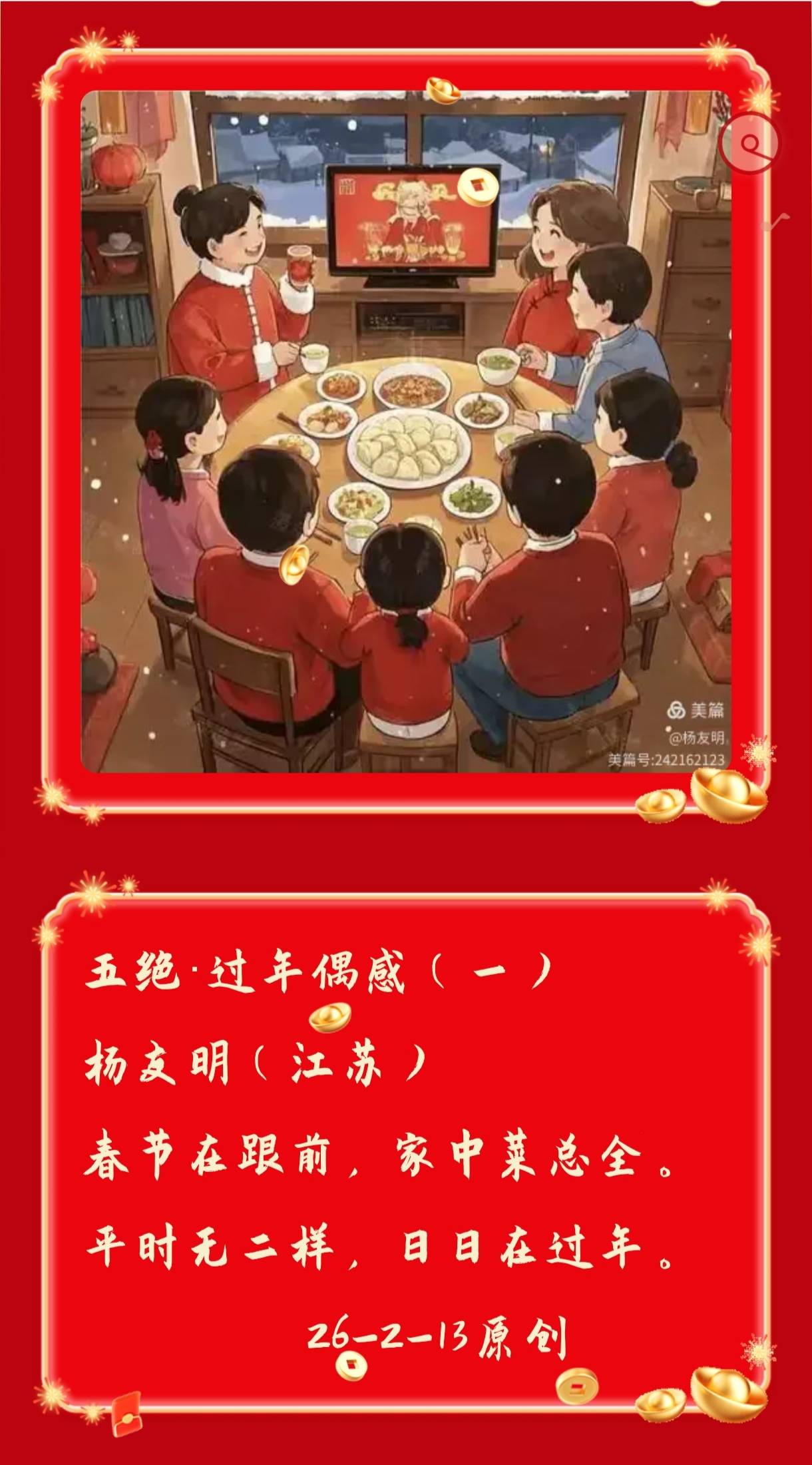 ·《跨年音乐会》:“跨年音乐会,苏大彻高歌。姐弟登台唱,狂欢有老哥。”通过描绘音乐会场景,体现了亲情带来的温暖与欢乐。