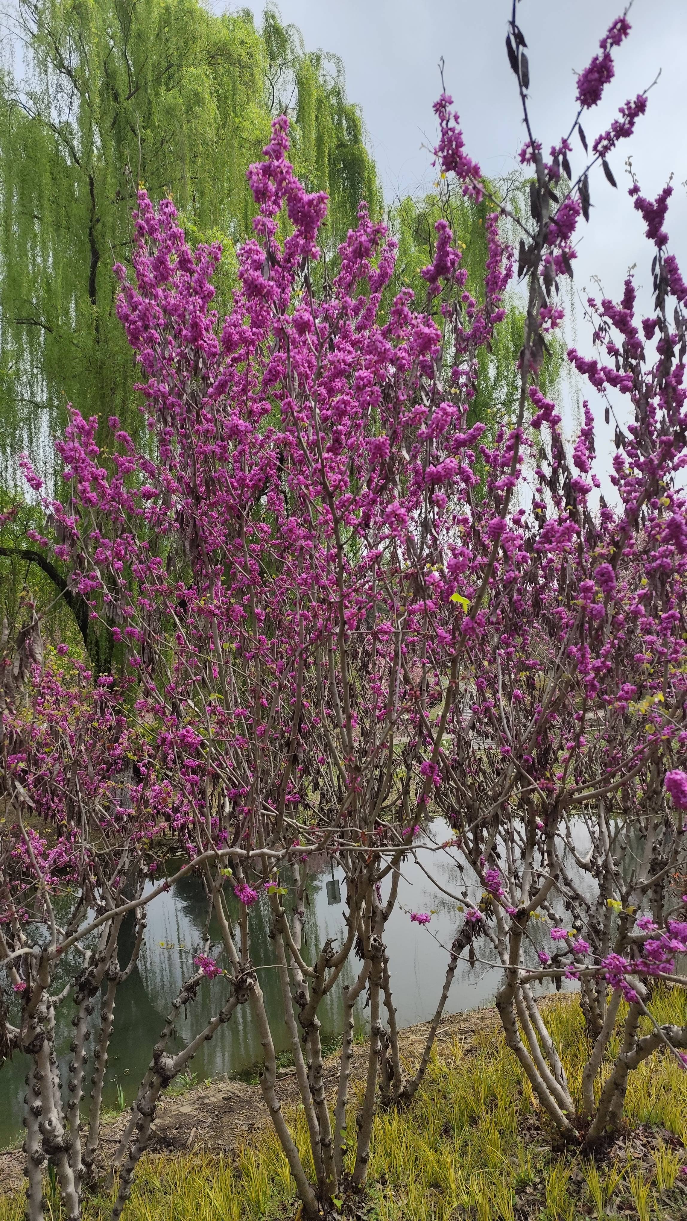 桃放海棠绽,紫荆樱满枝。