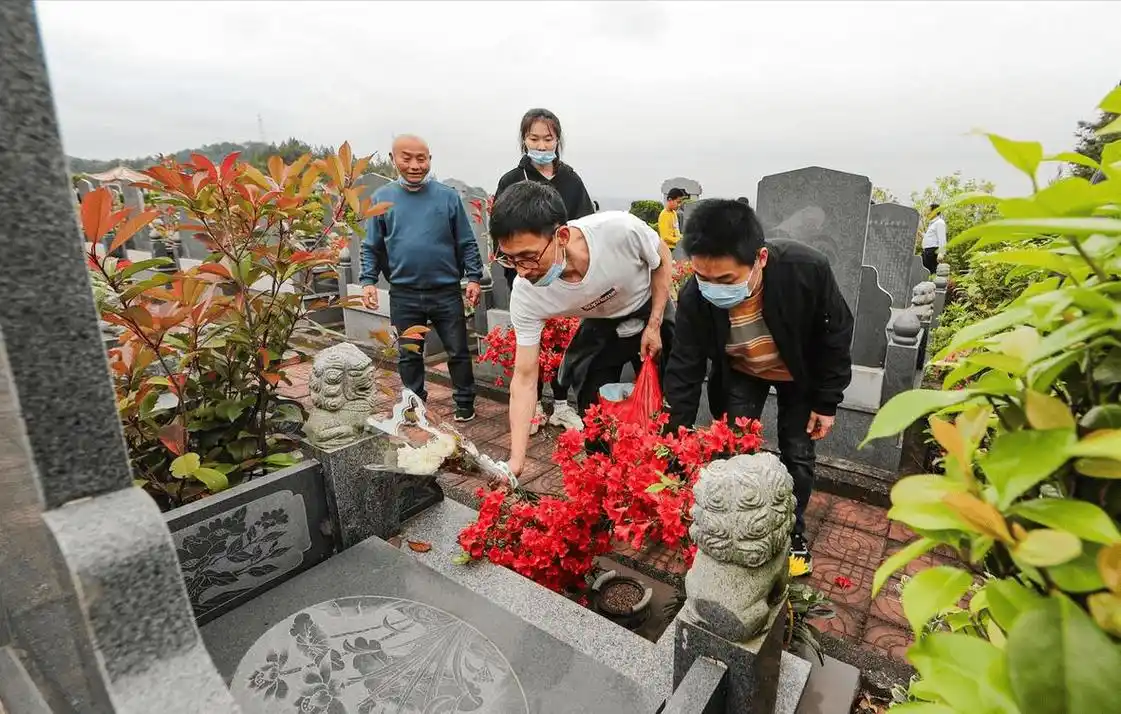 扫墓延香火,坟前孝字加。