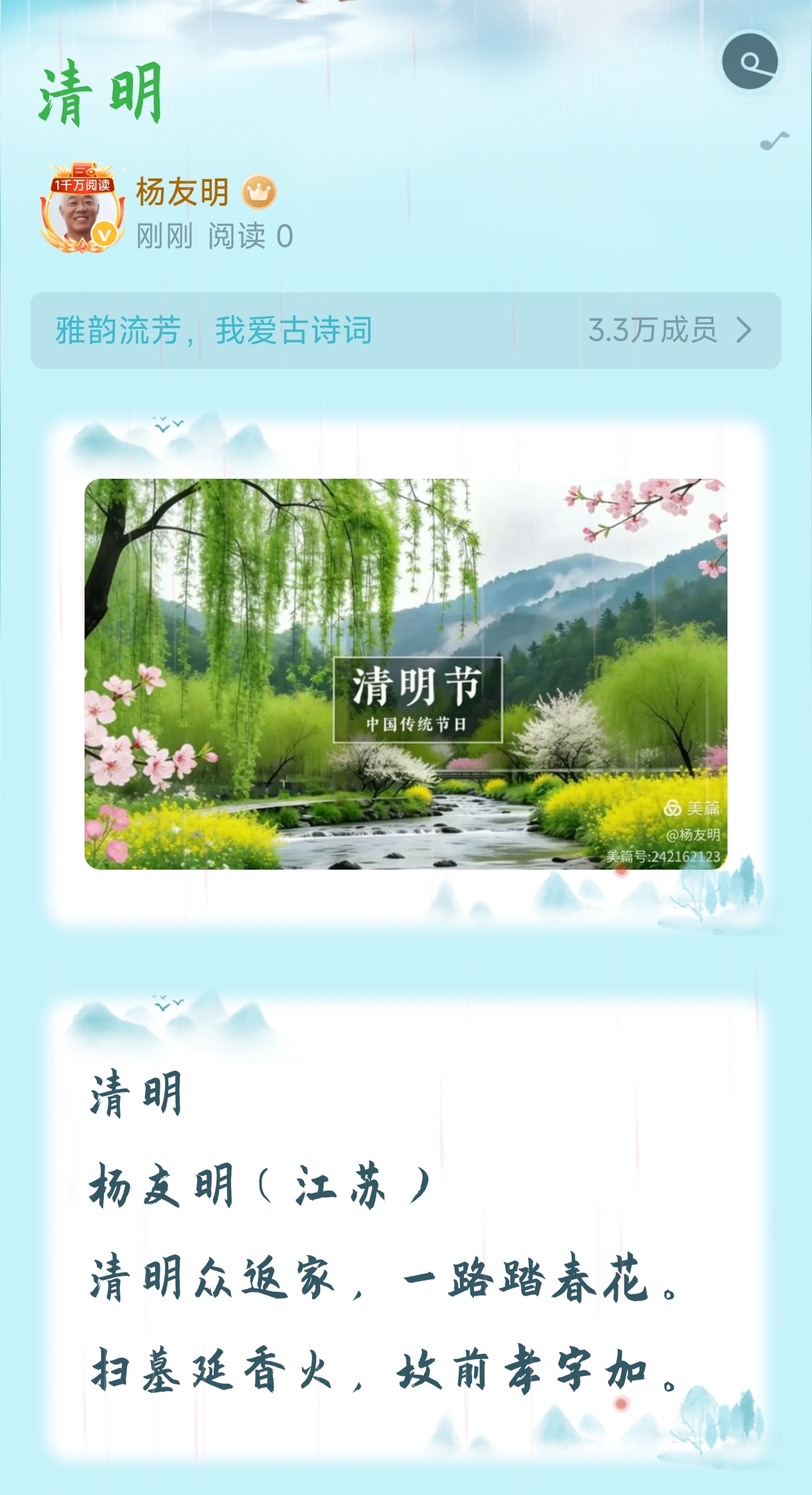 3.通俗的语言风格:杨友明的诗词多采用通俗易懂的语言,力求让诗歌贴近生活,容易引起读者共鸣。