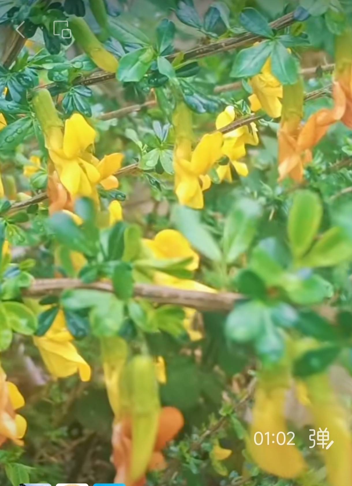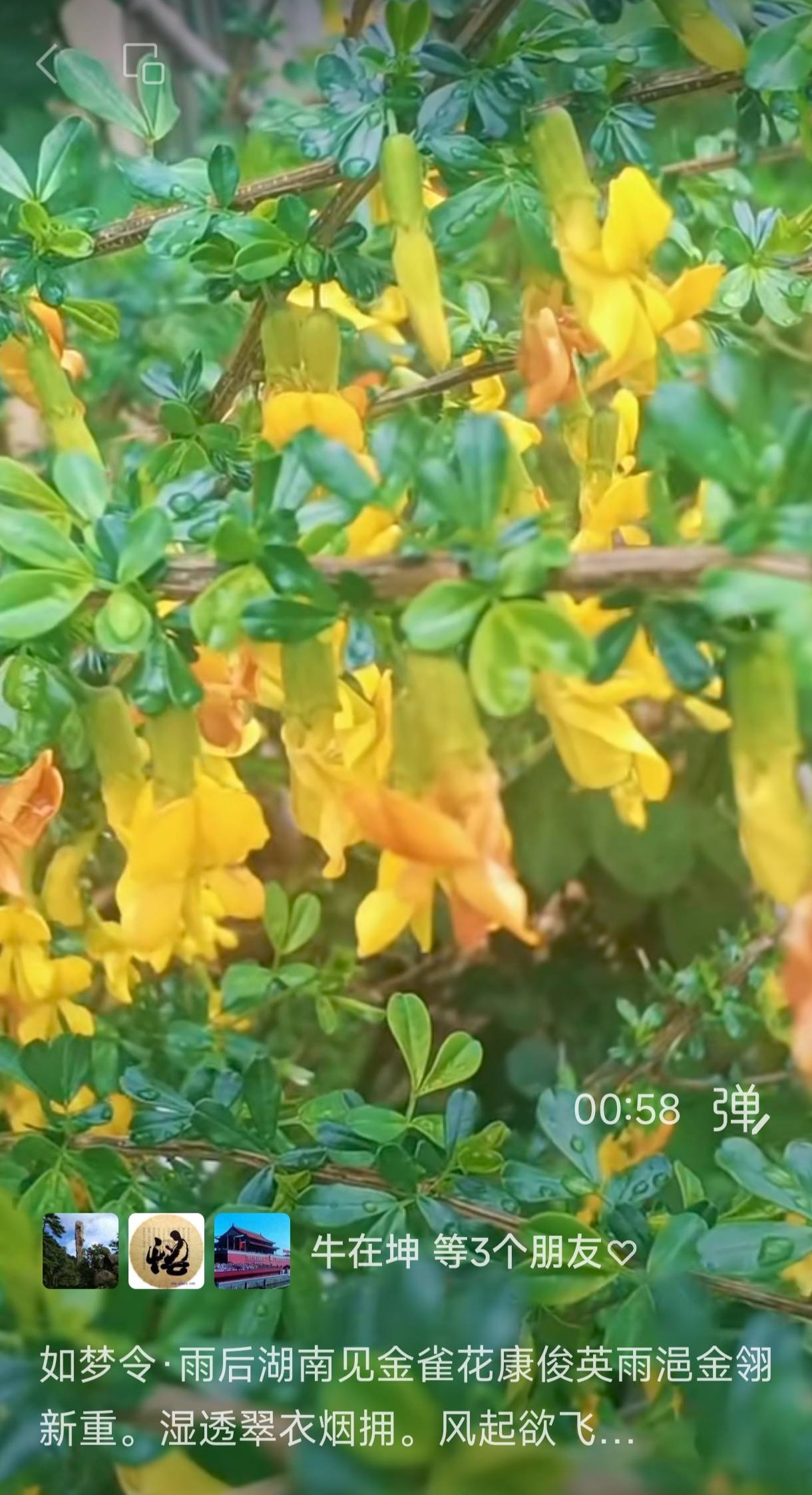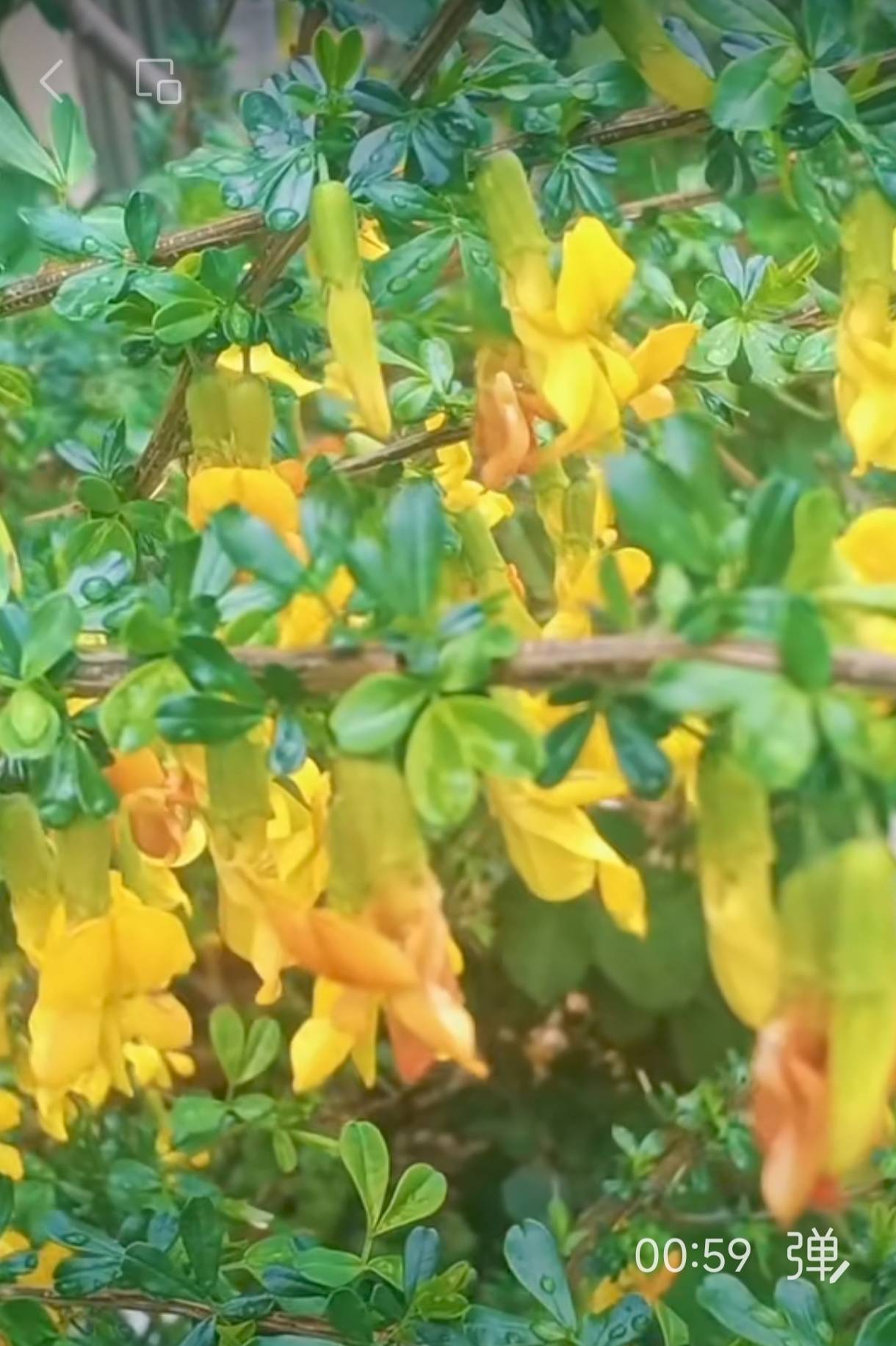 春雨浥,飞金雀,绿叶衬金芳。脉脉含情摇曳,顺风暗送清香。